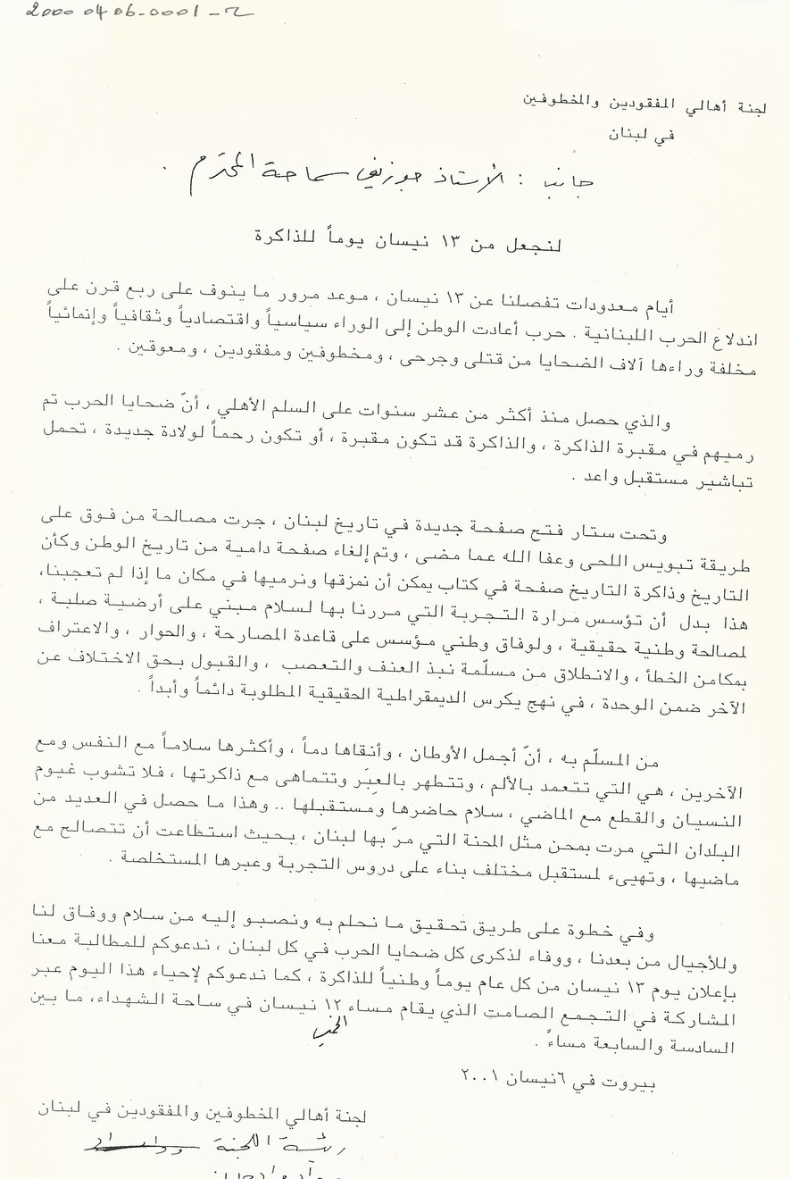 - ar دعوة للمشاركة في نشاط 13 نيسان : يوما للذاكرة