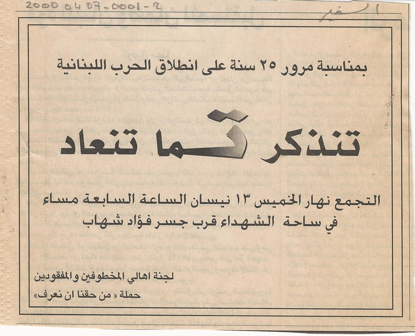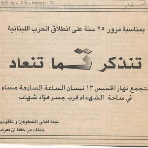 “May it be remembered and so not repeated,” is launched on the occasion of the 25th anniversary of the outbreak of the Lebanese civil war.