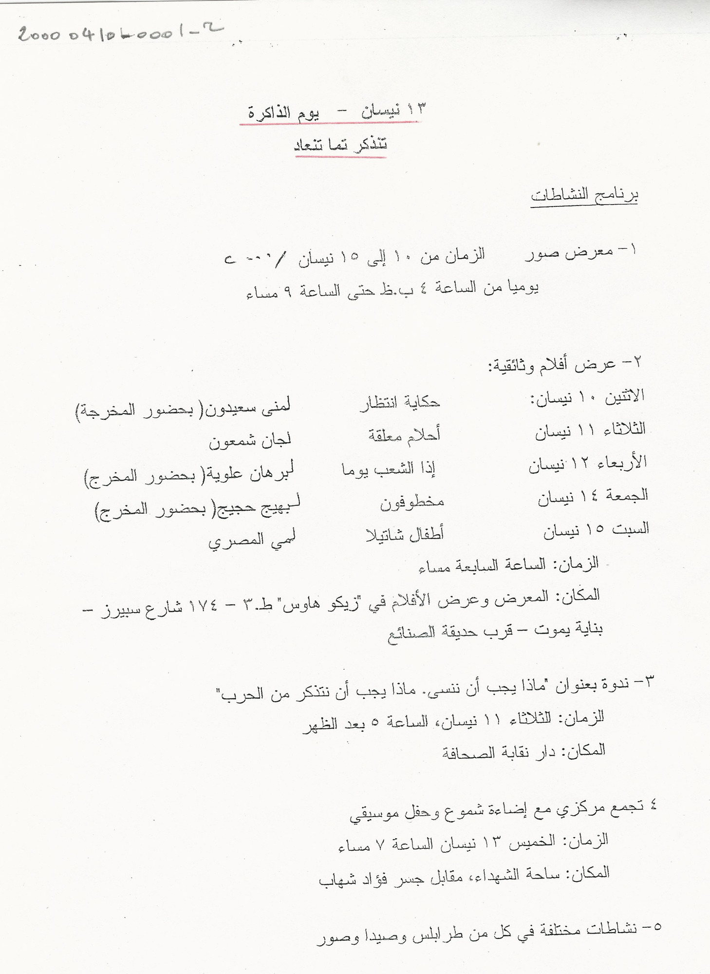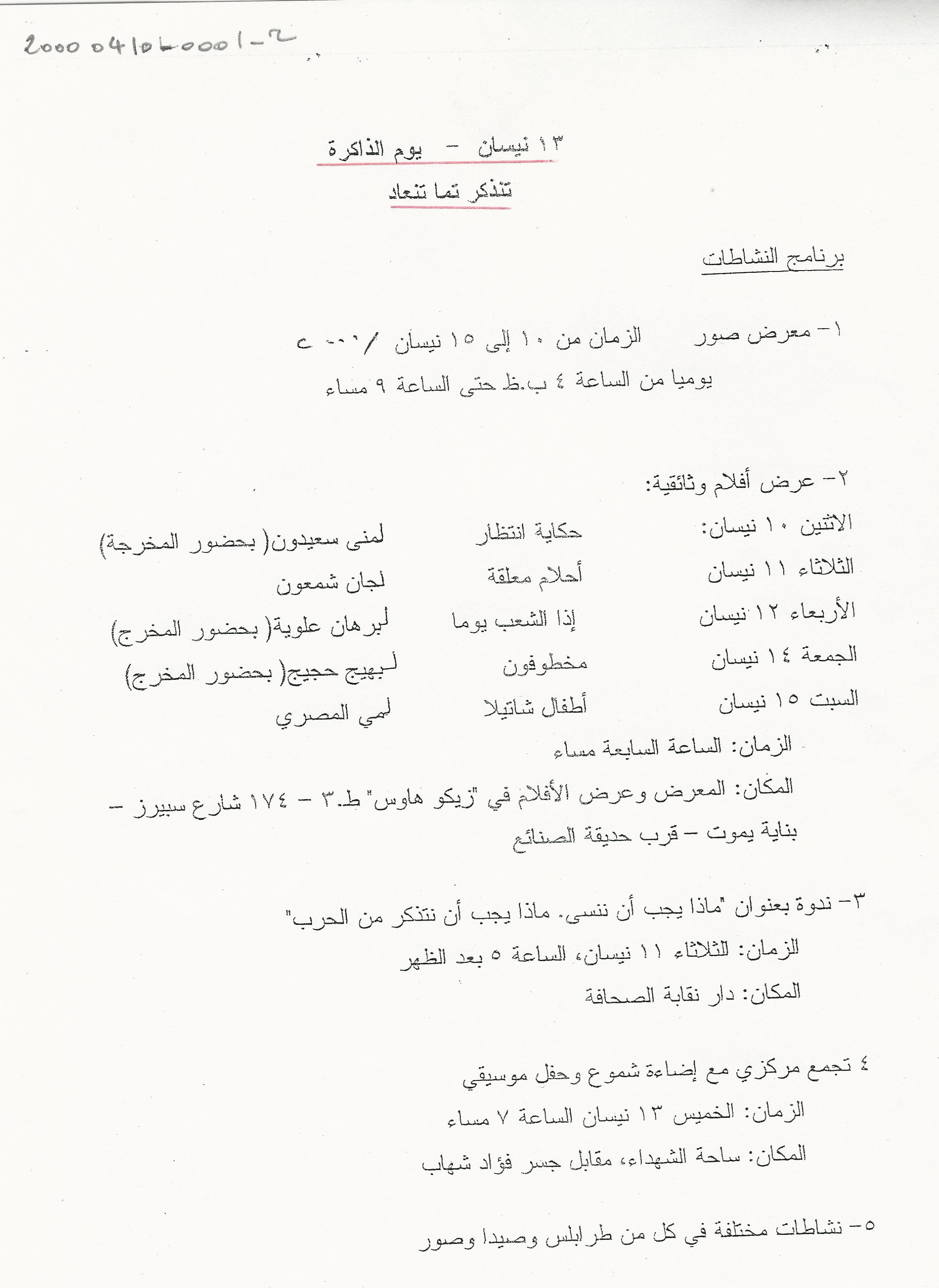 - en April 13, a Day for Memory, May it be remembered and so not repeated