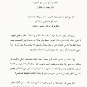 The war: what are the things that we should forget and what are the things that we should remember? - Description