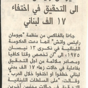 - en Human Rights calls to investigate the disappearance of 17,000 Lebanese