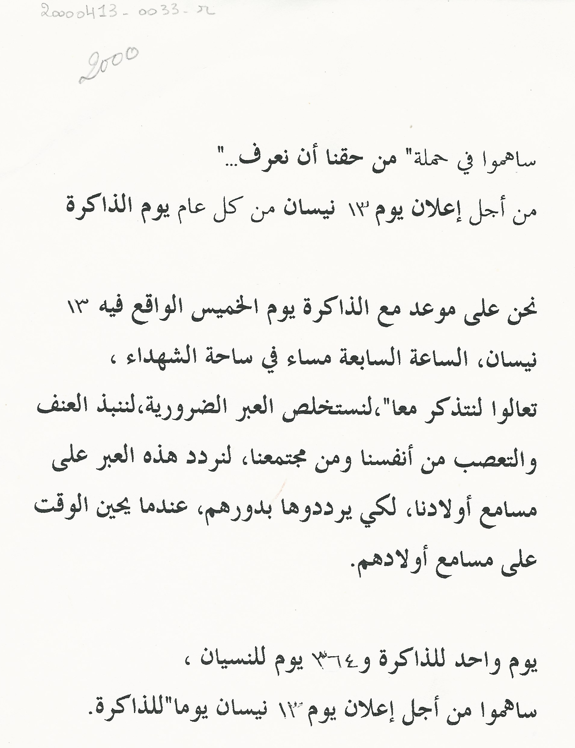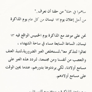 - ar دعوة من اجل اعلان 13 نيسان يوم الذاكرة