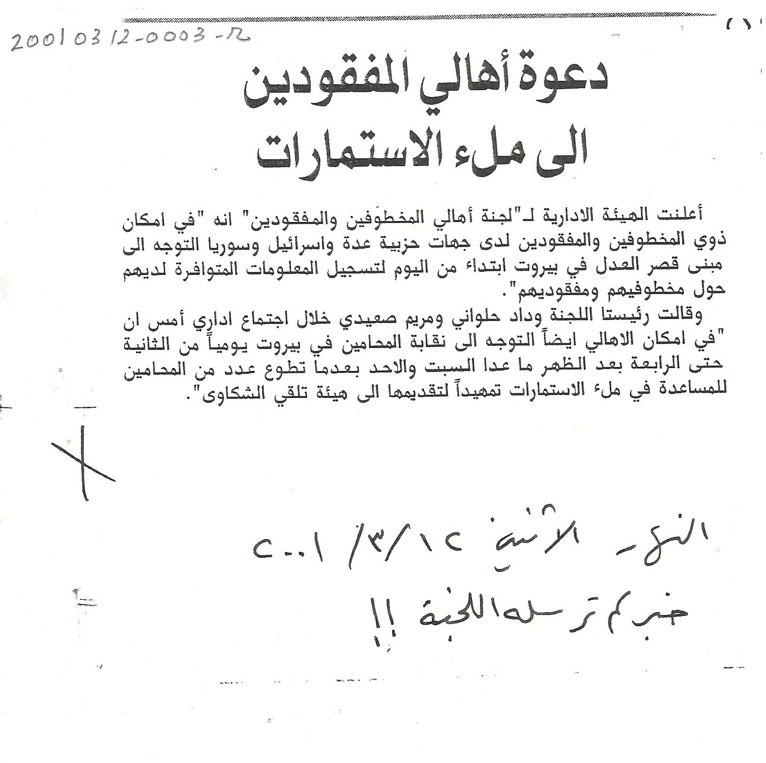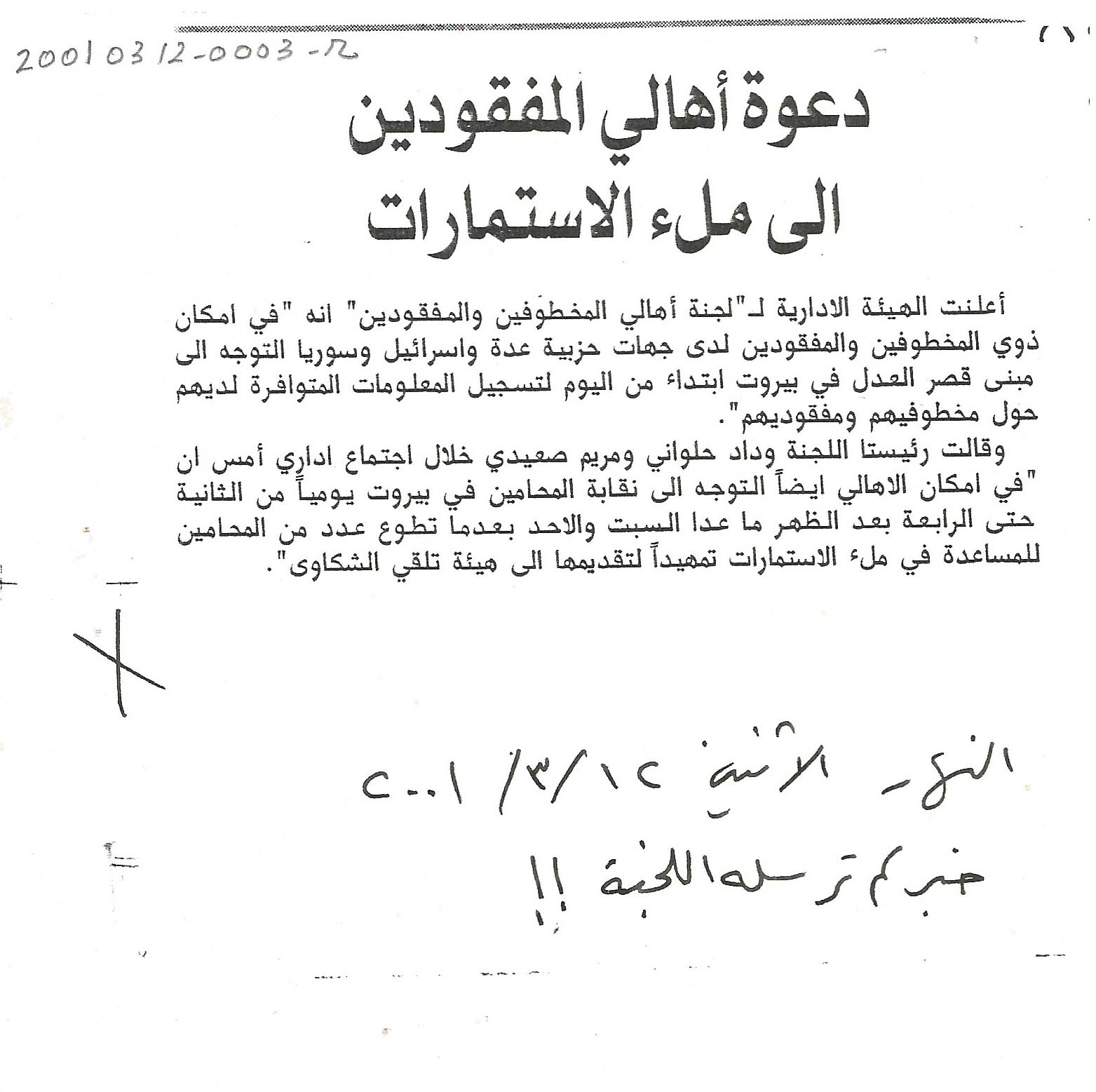 - ar دعوة اهالي المخطوفين الى ملء الاستمارات