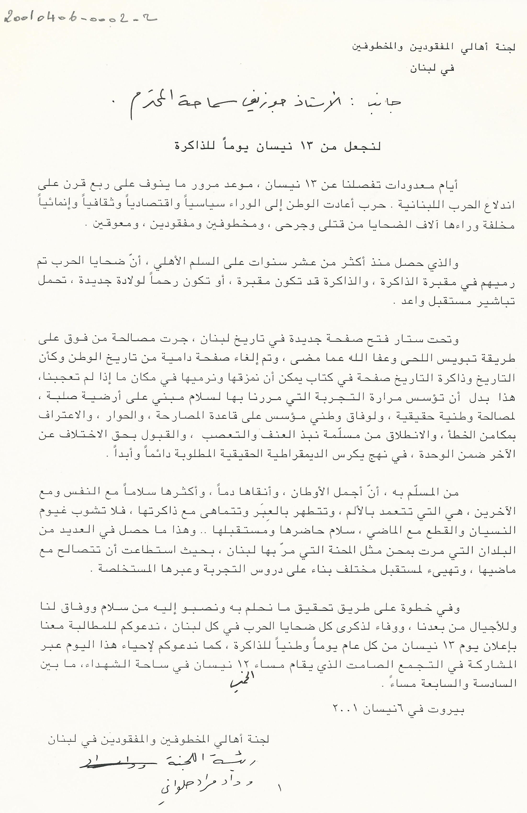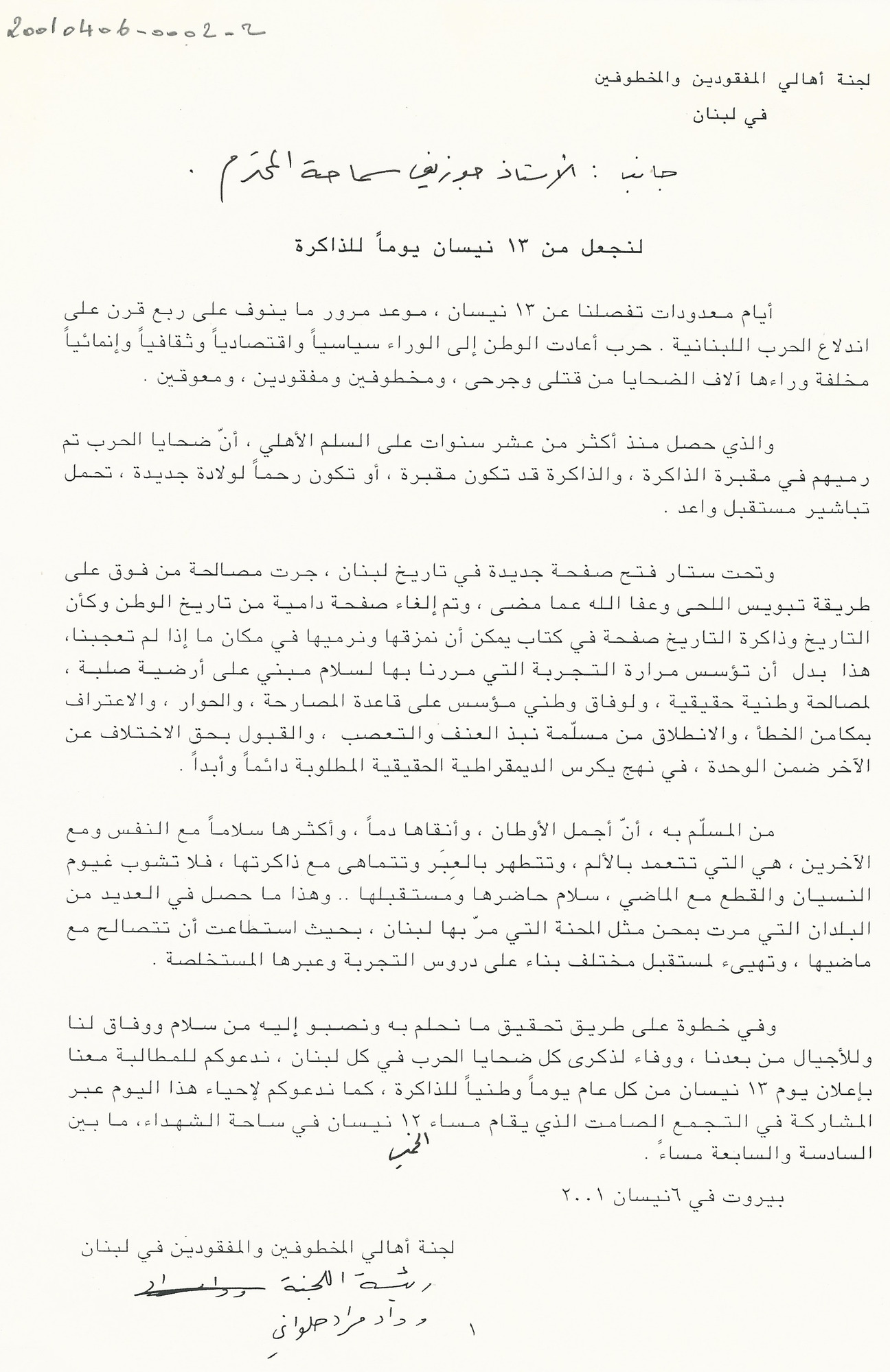- en Invitation to Joseph Samaha: let’s make April 13 a Day for Memory.