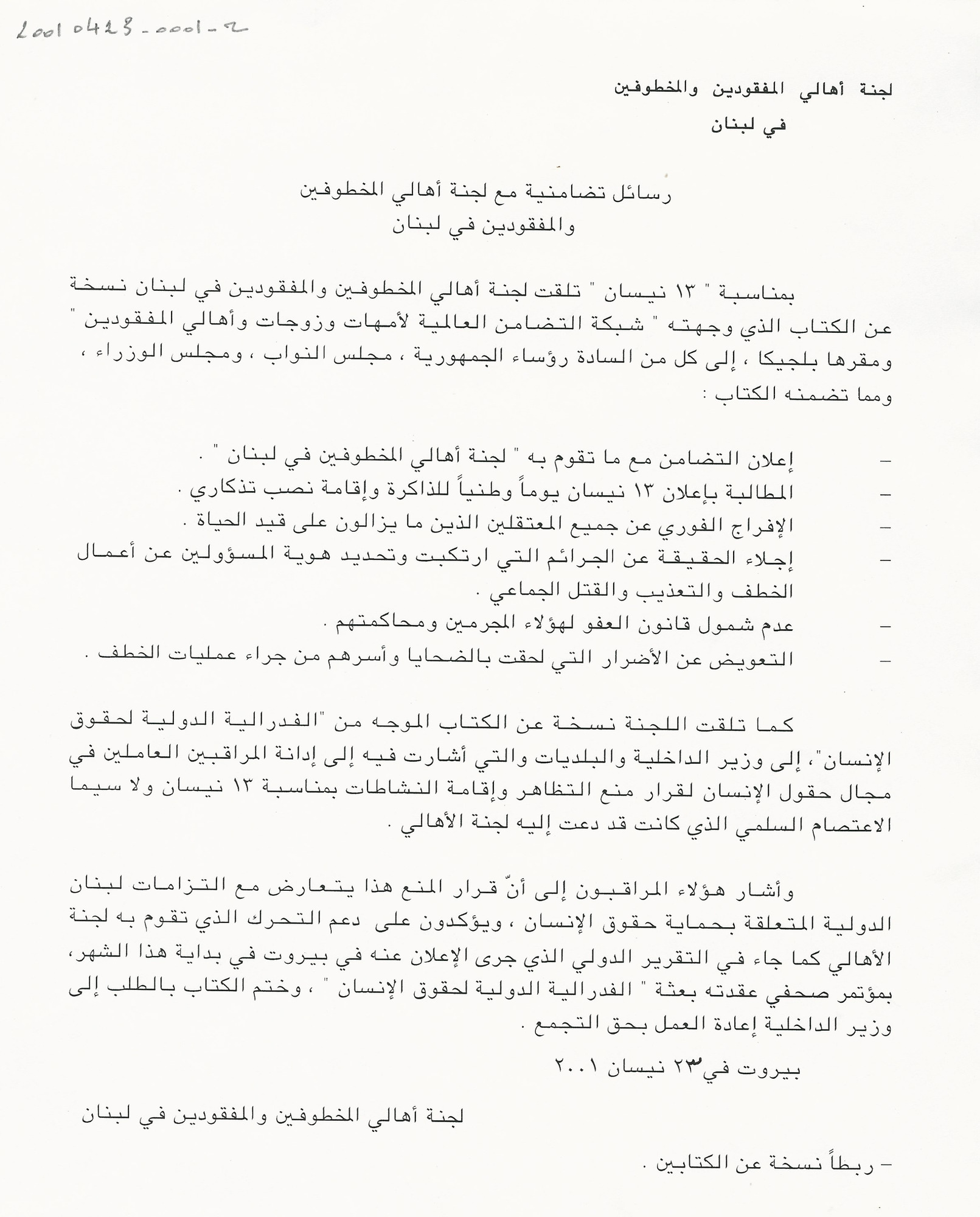 - en Letters sent in solidarity with the Committee of the Families of the Kidnapped and Missing in Lebanon