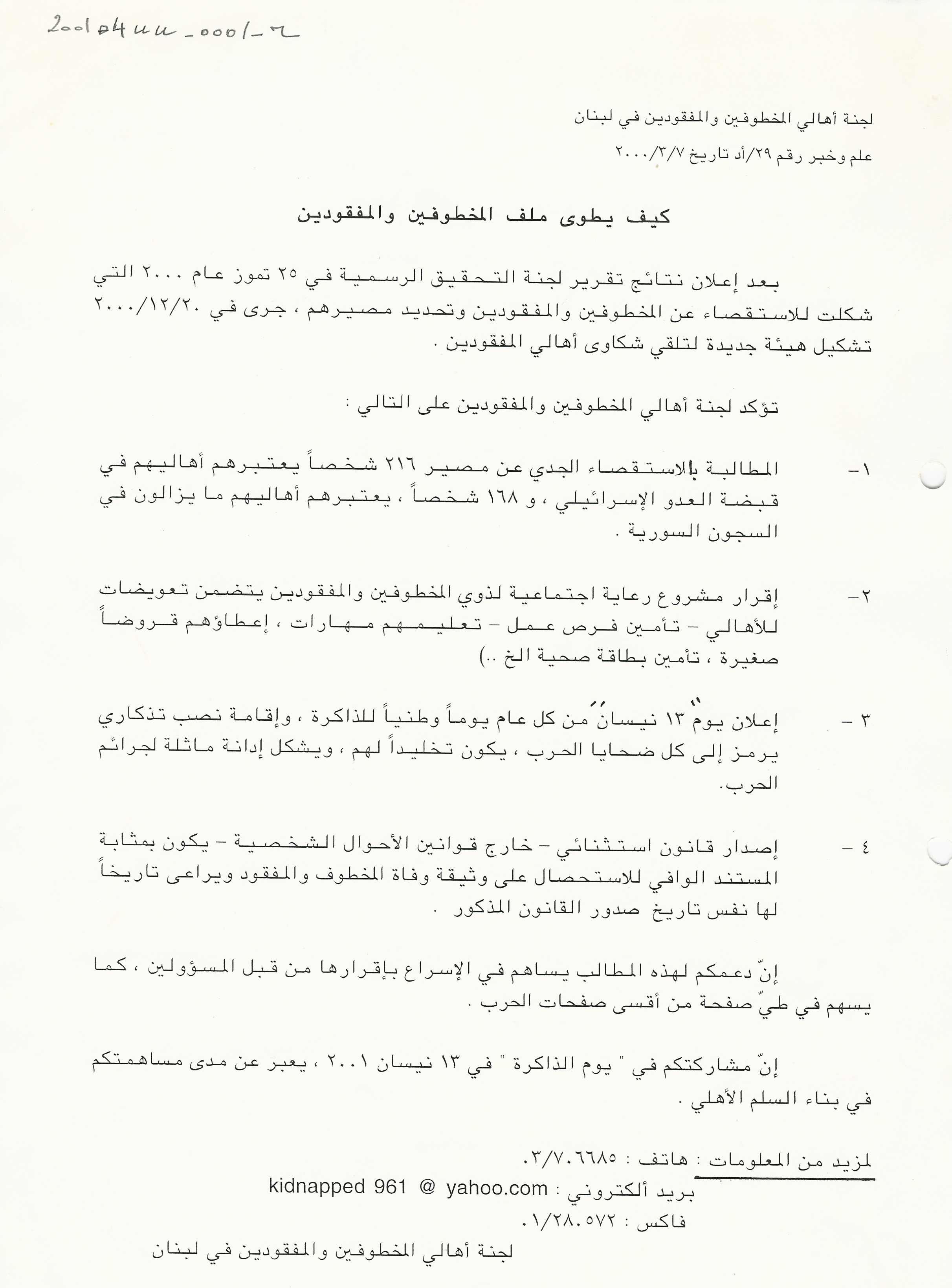 - لجنة اهالي المخطوفين والمفقودين في لبنان