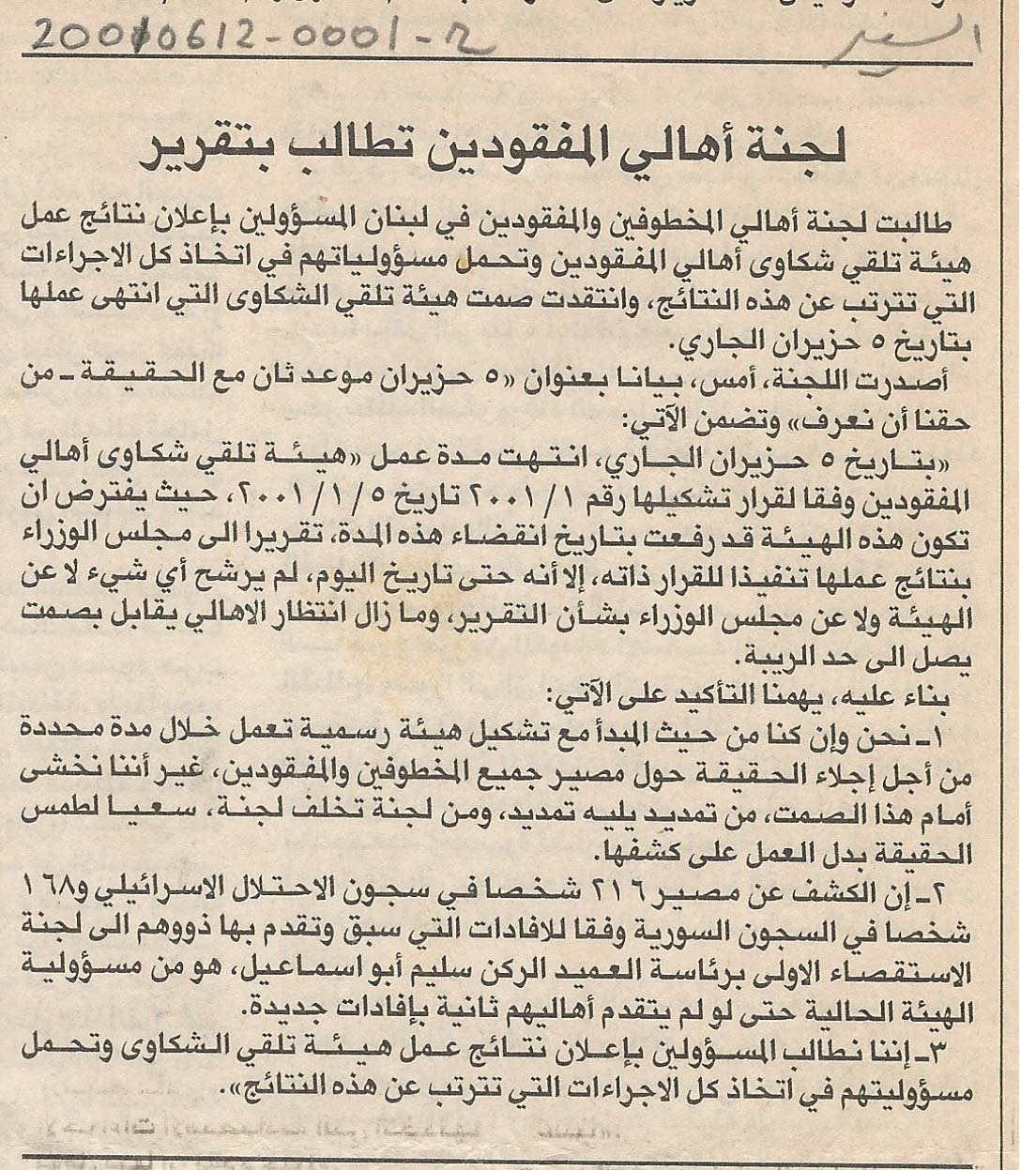 - ar لجنة اهالي المخطوفين تطالب بتقرير