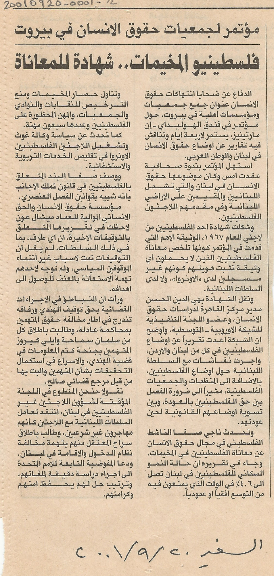 - ar مؤتمر لجمعيات حقوق الانسان في بيروت، فلسطينيو المخيمات شهادة للمعاناة