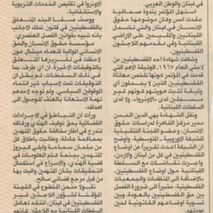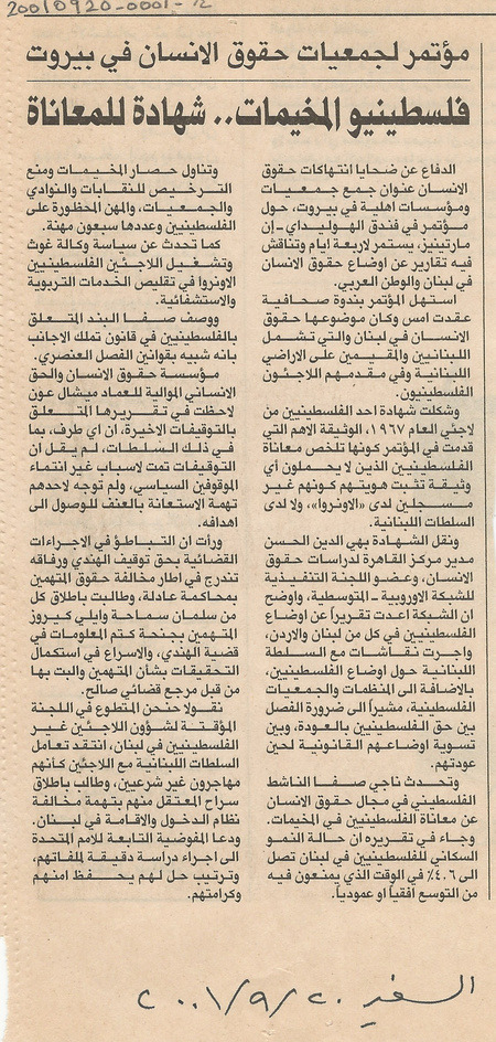- en Human rights organizations held a conference in Beirut: The testimony of sufferings as told by the Palestinians of the camp.