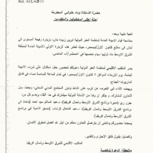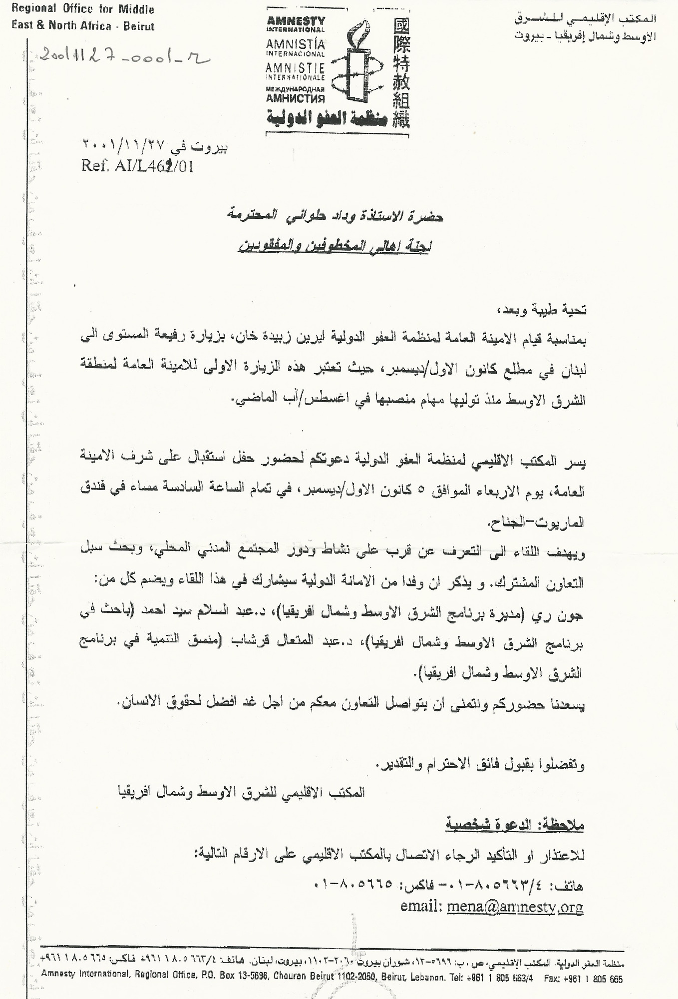 - ar دعوة لجنة الاهالي لحضور حفل استقبال الامينة العامة لمنظمة العفو الدولية