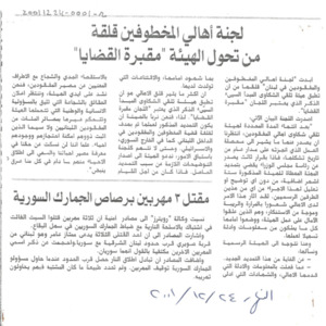 - en The Committee of the Families of the Kidnapped is afraid that the complaints commission would turn into a cemetery for the issues.