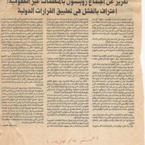 تقرير عن اجتماع روبنسون بالمنظمات غير الحكومية: اعتراف بالفشل في تطبيق القرارات الدولية