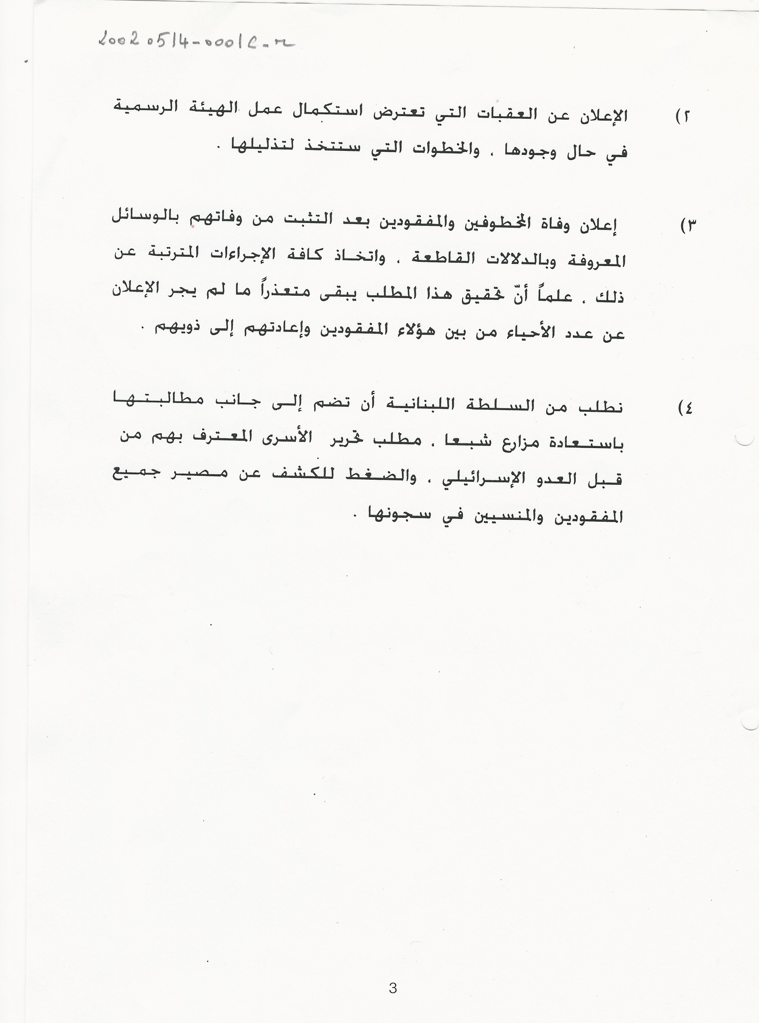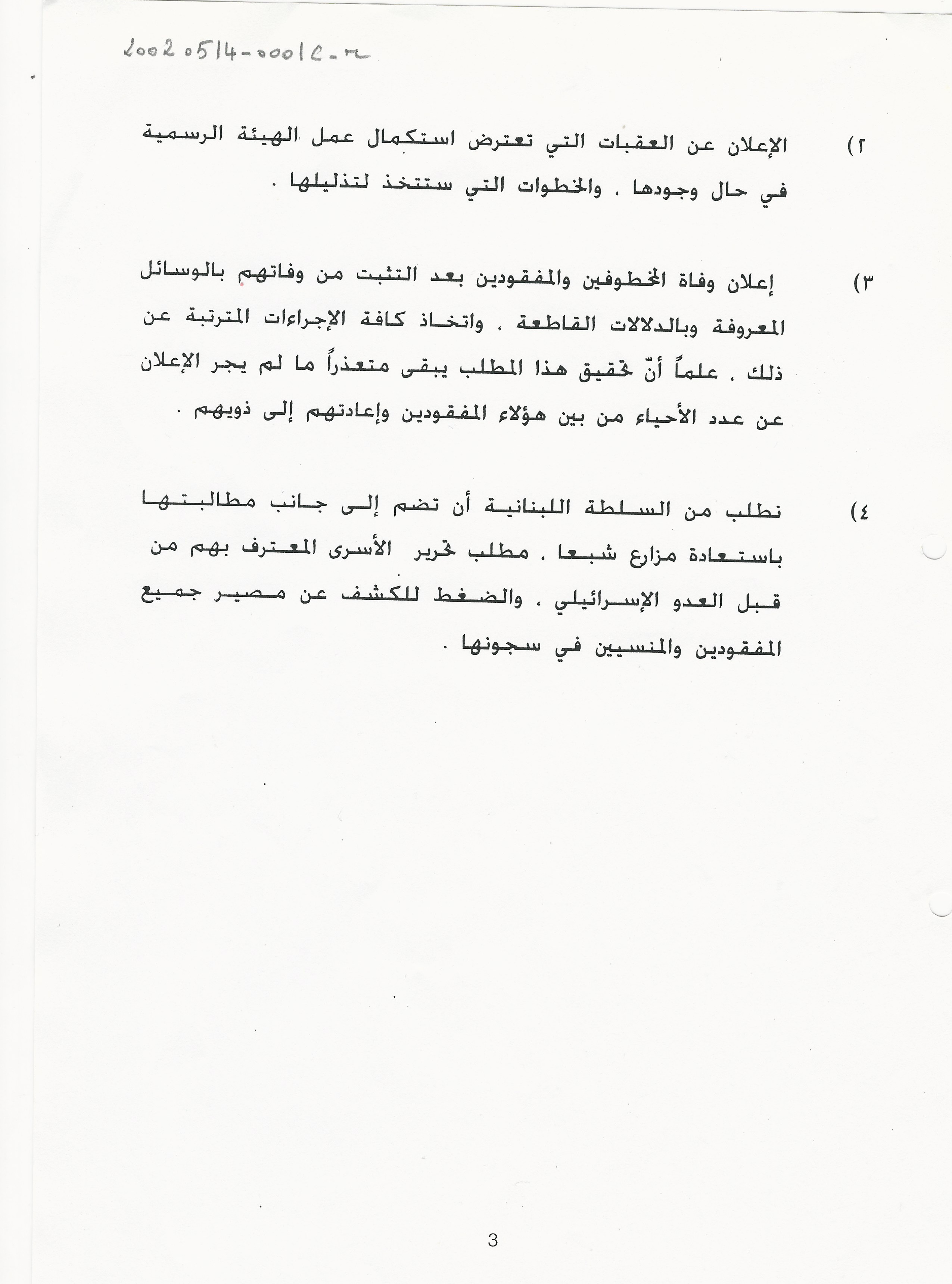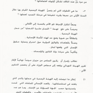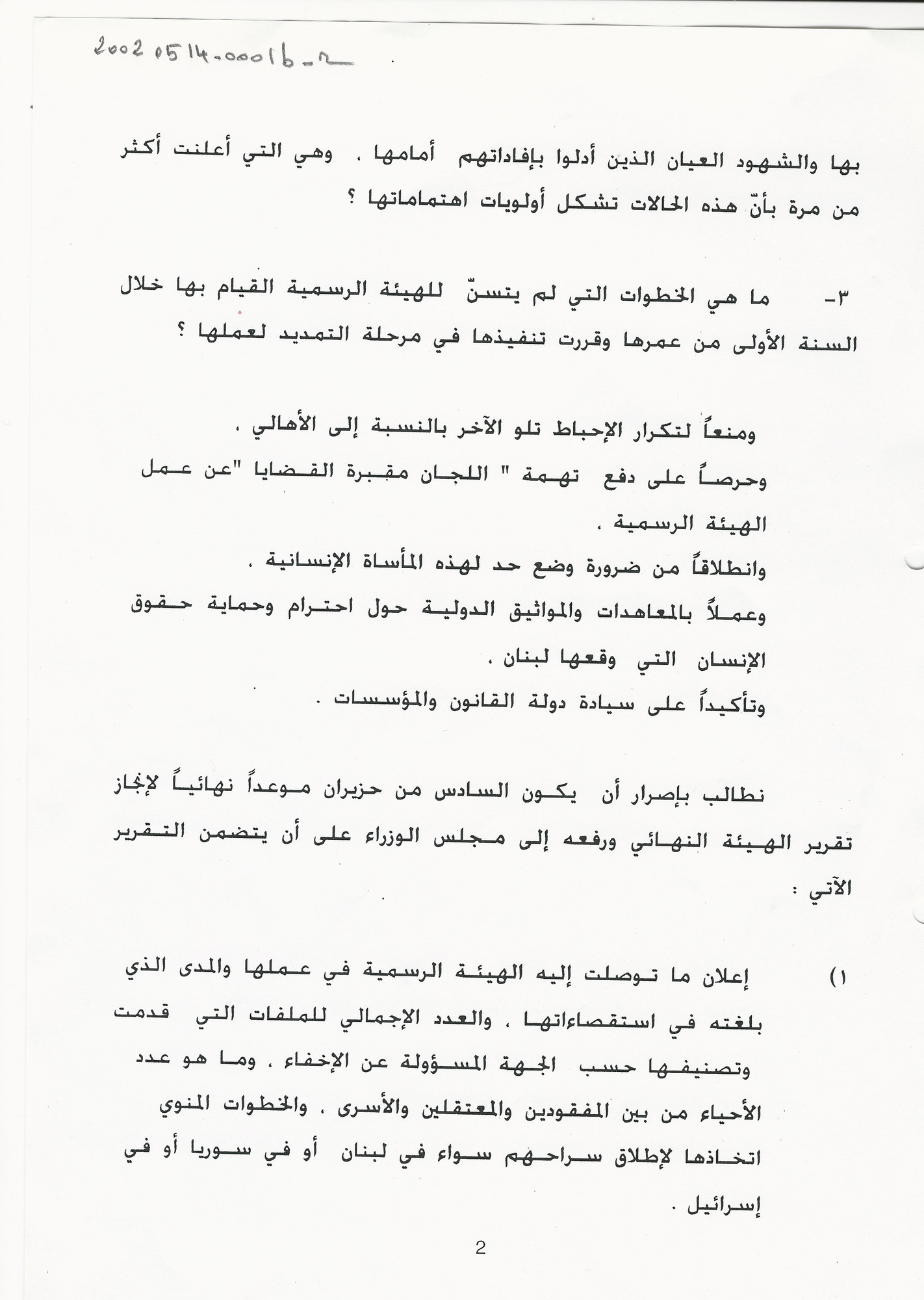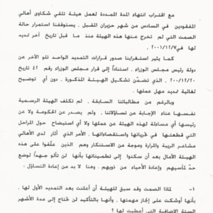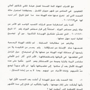 - ar مشروع مذكرة لجنة الاهالي يتعلق بنتائج عمل هيئة تلقي شكاوى اهالي المفقودين