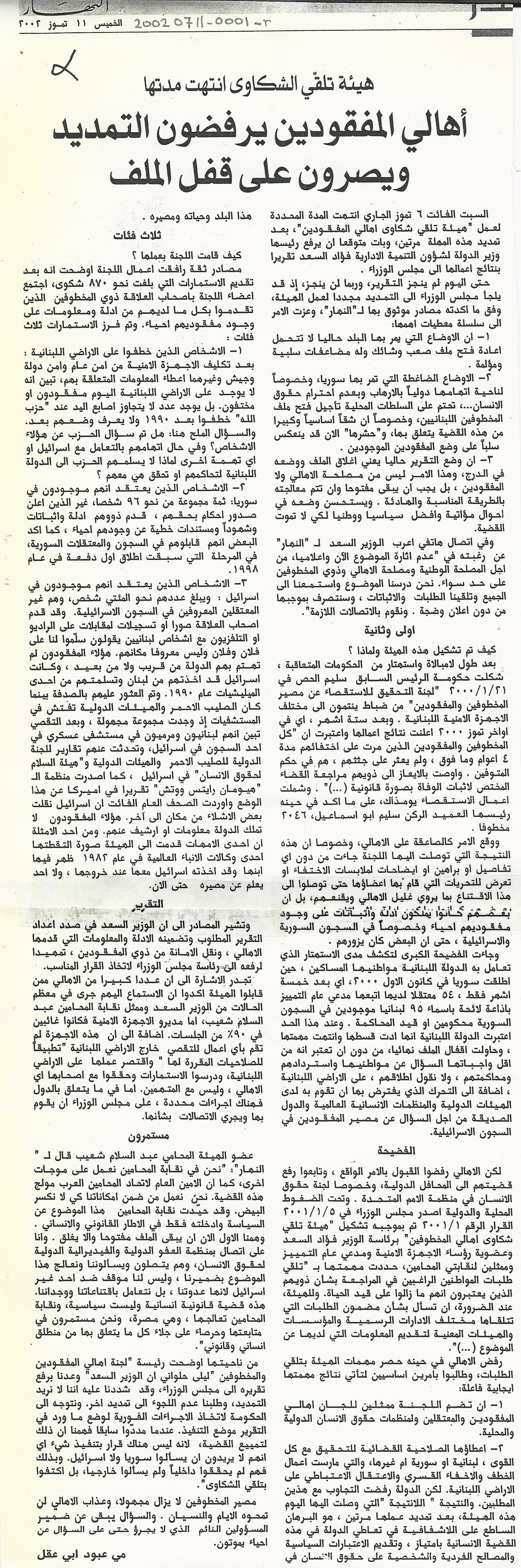 هيئة تلقي الشكاوى انتهت مدتها اهالي المفقودين يرفضون التمديد ويصرون على قفل الملف