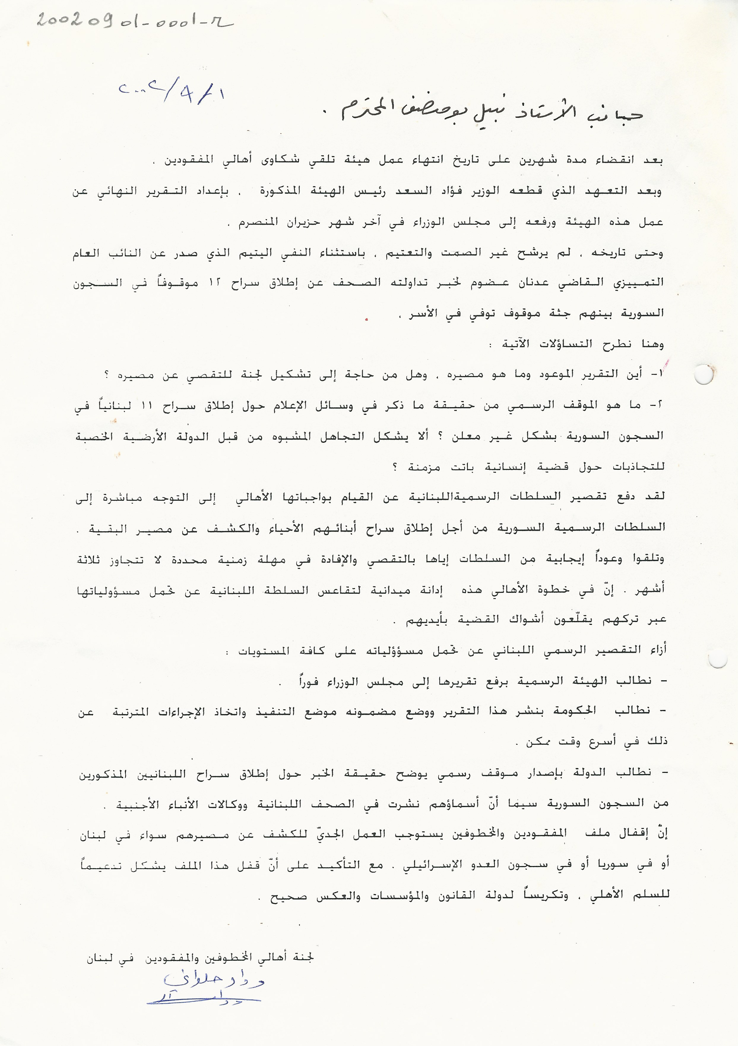 - لجنة اهالي المخطوفين والمفقودين في لبنان