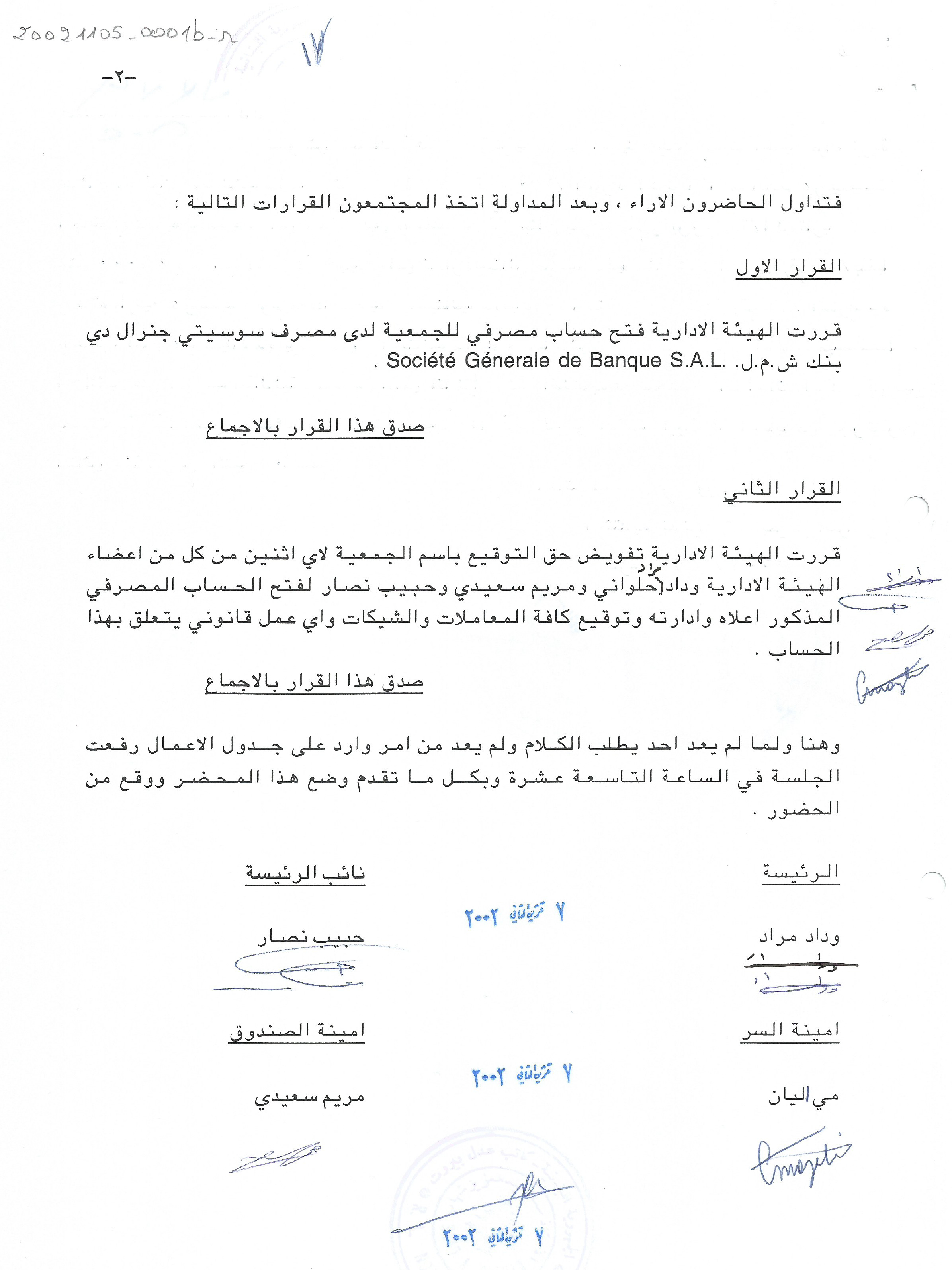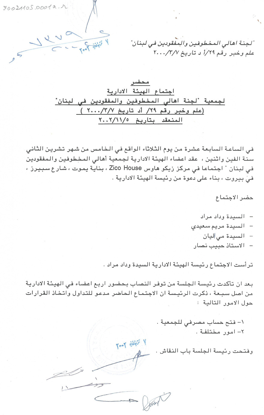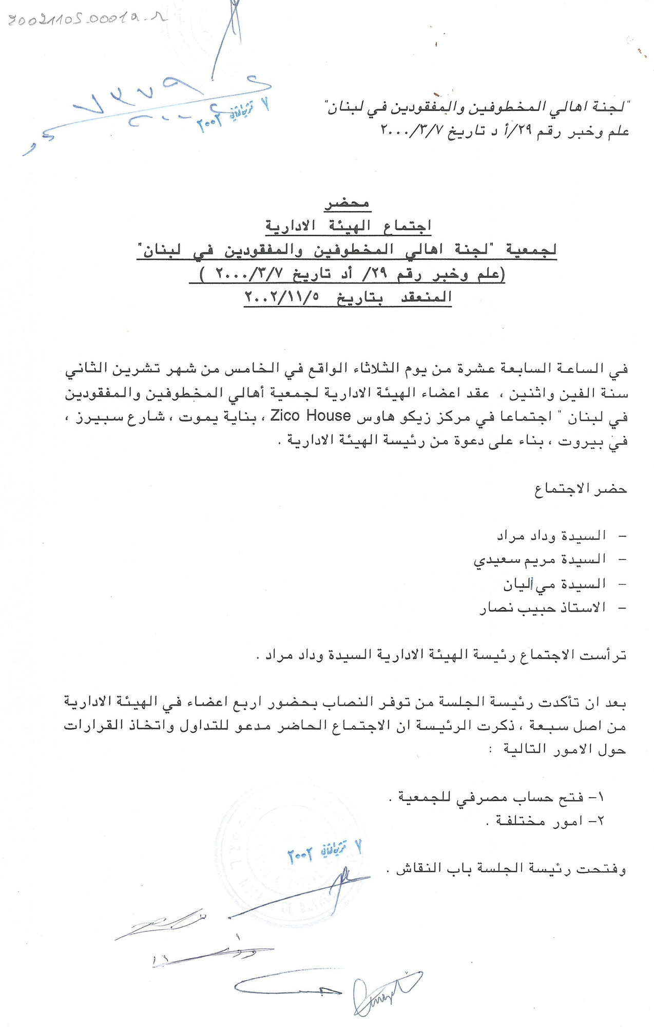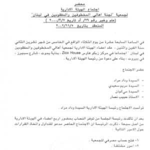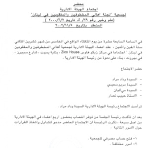 محضر اجتماع الهيئة الادارية لجمعية لجنة اهالي المحطوفين والمفقودين في لبنان
