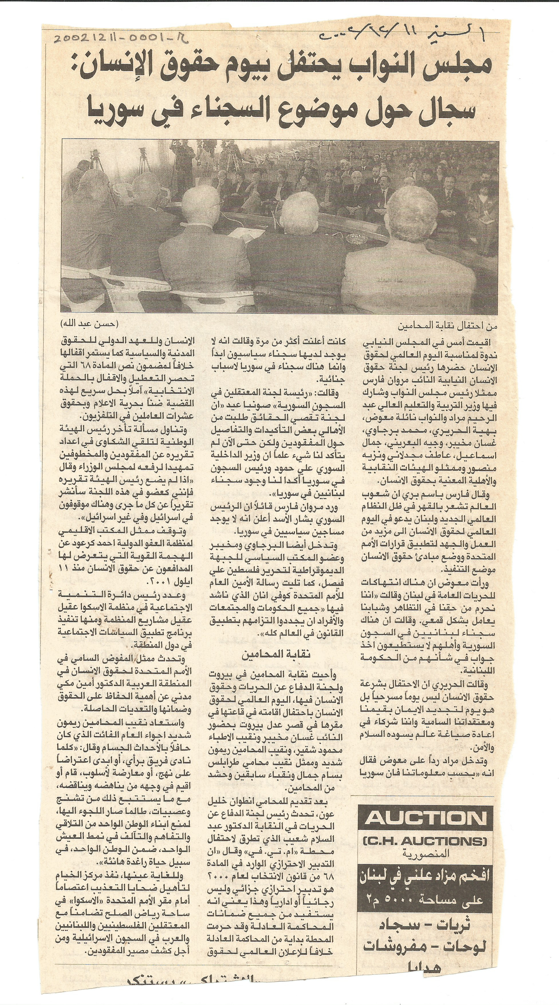 - ar مجلس النواب يحتفل بيوم حقوق الانسان: سجال حول موضوع السجناء في سوريا