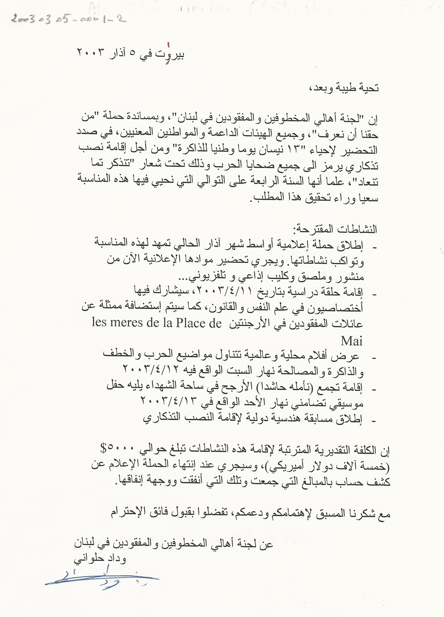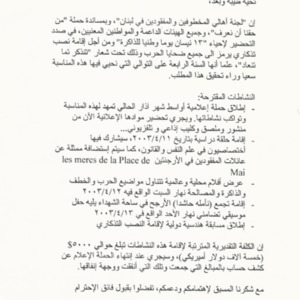 - ar النشاطات المقترحة للجنة الاهالي وحملة من حقنا ان نعرف بمناسبة 13 نيسان