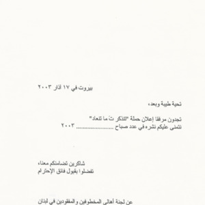 - ar طلب نشر اعلان لحملة تنذكر ت ما تنعاد