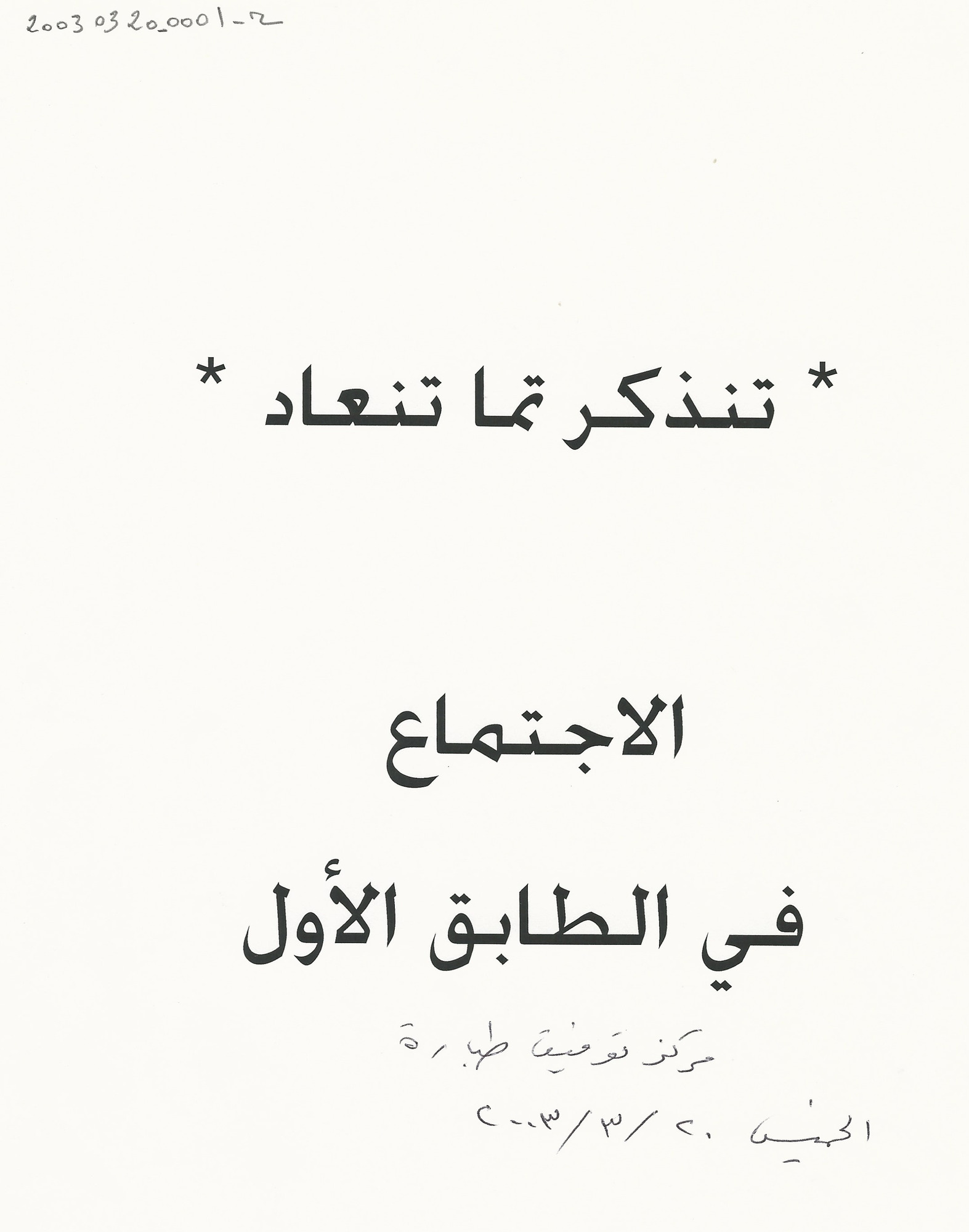 - ar تنذكر تما تنعاد: الاجتماع في الطابق الاول