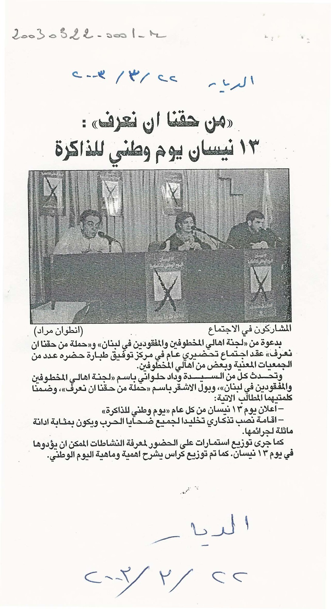 - ar من حقنا ان نعرف: 13 نيسان يوم وطني للذاكرة