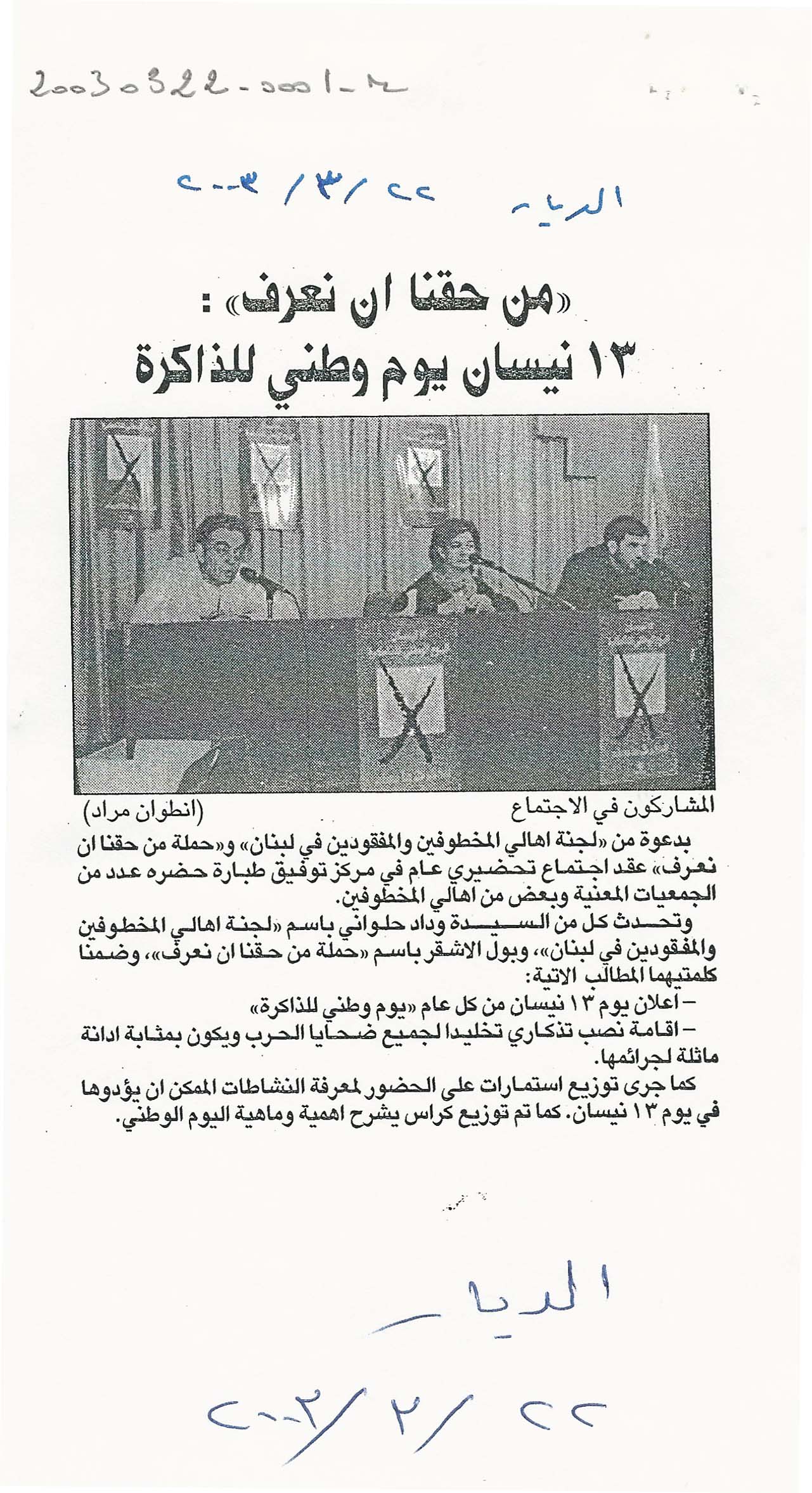 من حقنا ان نعرف: 13 نيسان يوم وطني للذاكرة