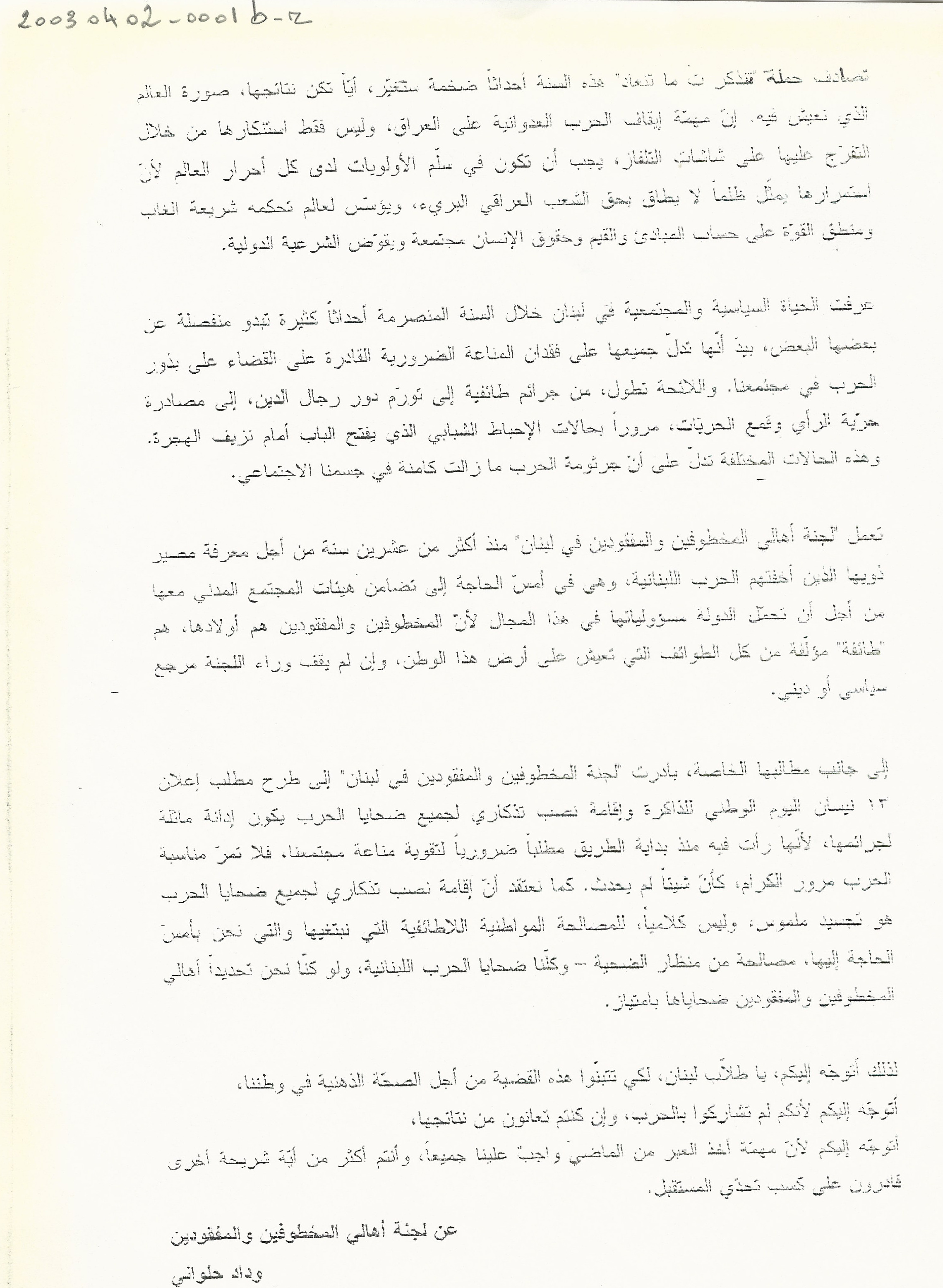 - لجنة اهالي المخطوفين والمفقودين في لبنان