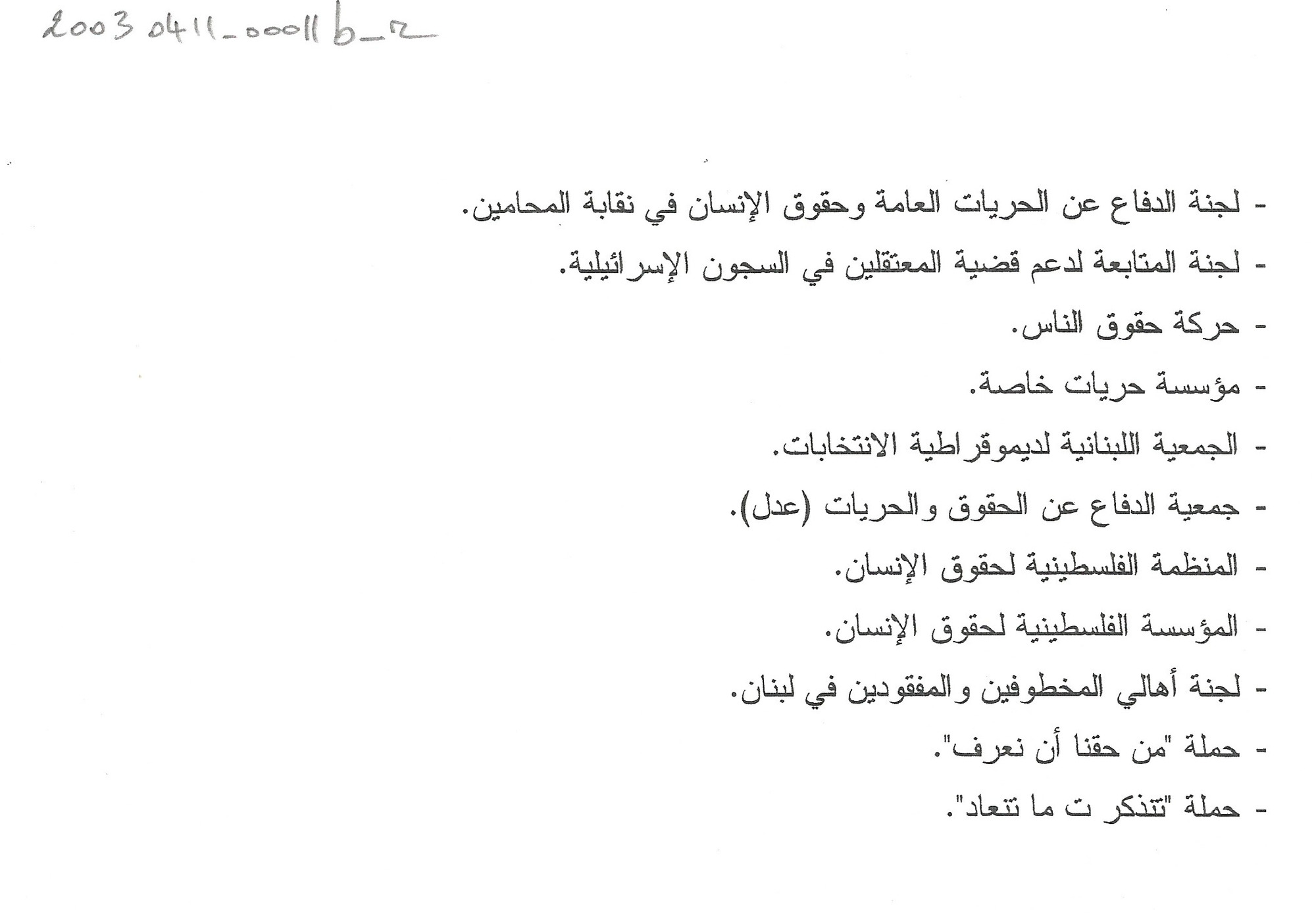 - الجمعية اللبنانية لحقوق الانسان، بيروت