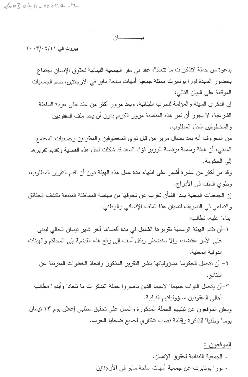 - لجنة اهالي المخطوفين والمفقودين في لبنان