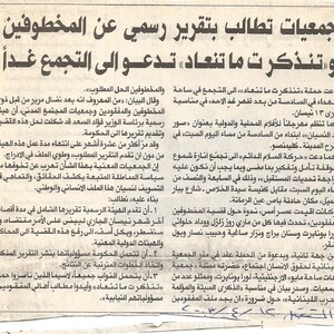 - en Associations demand an official report on the kidnapped. The “May it be remembered and so not repeated” campaign calls for a gathering tomorrow.
