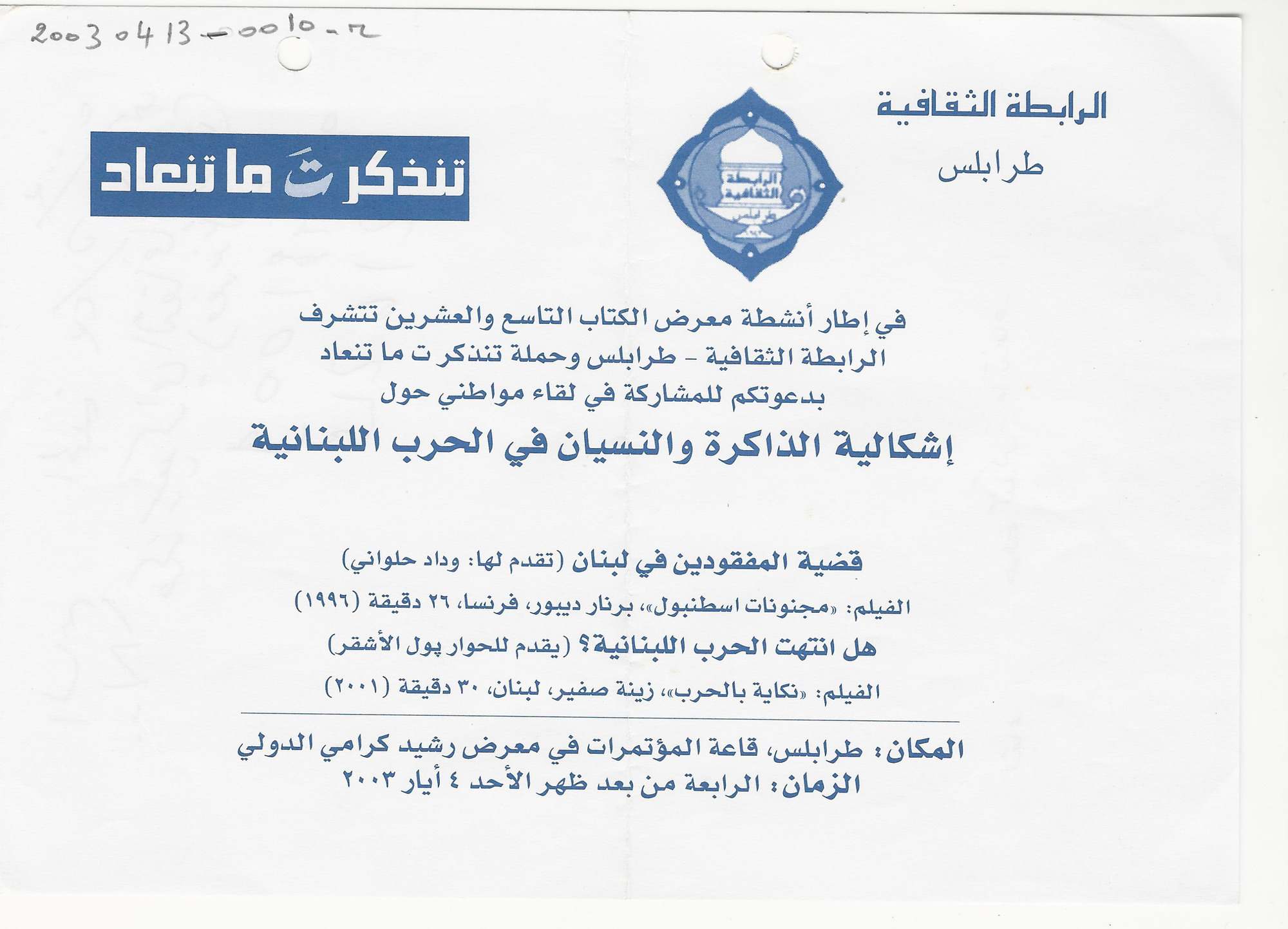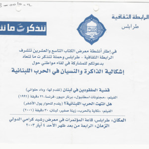 - حملة تنذكر تـ ما تنعاد، 2003