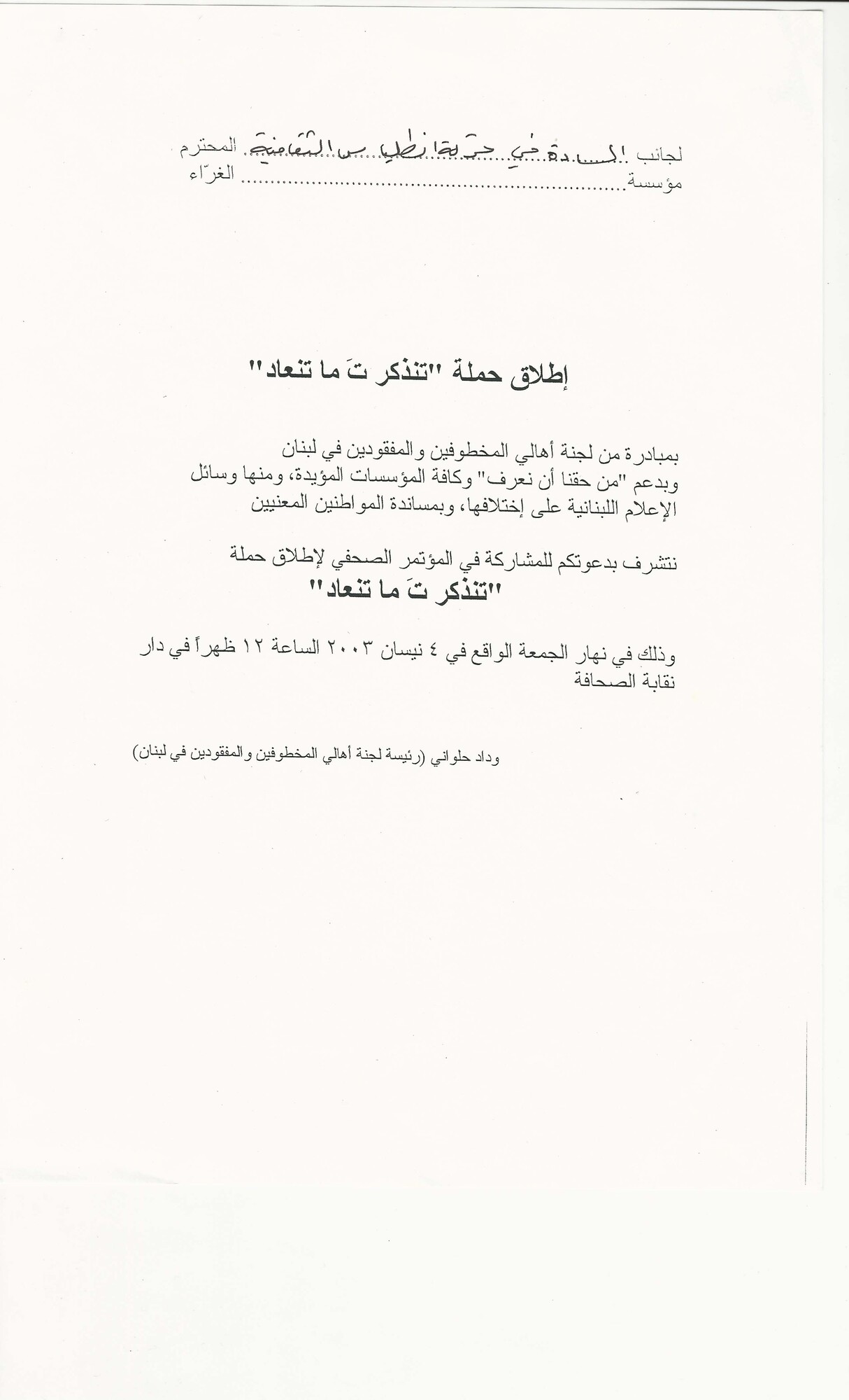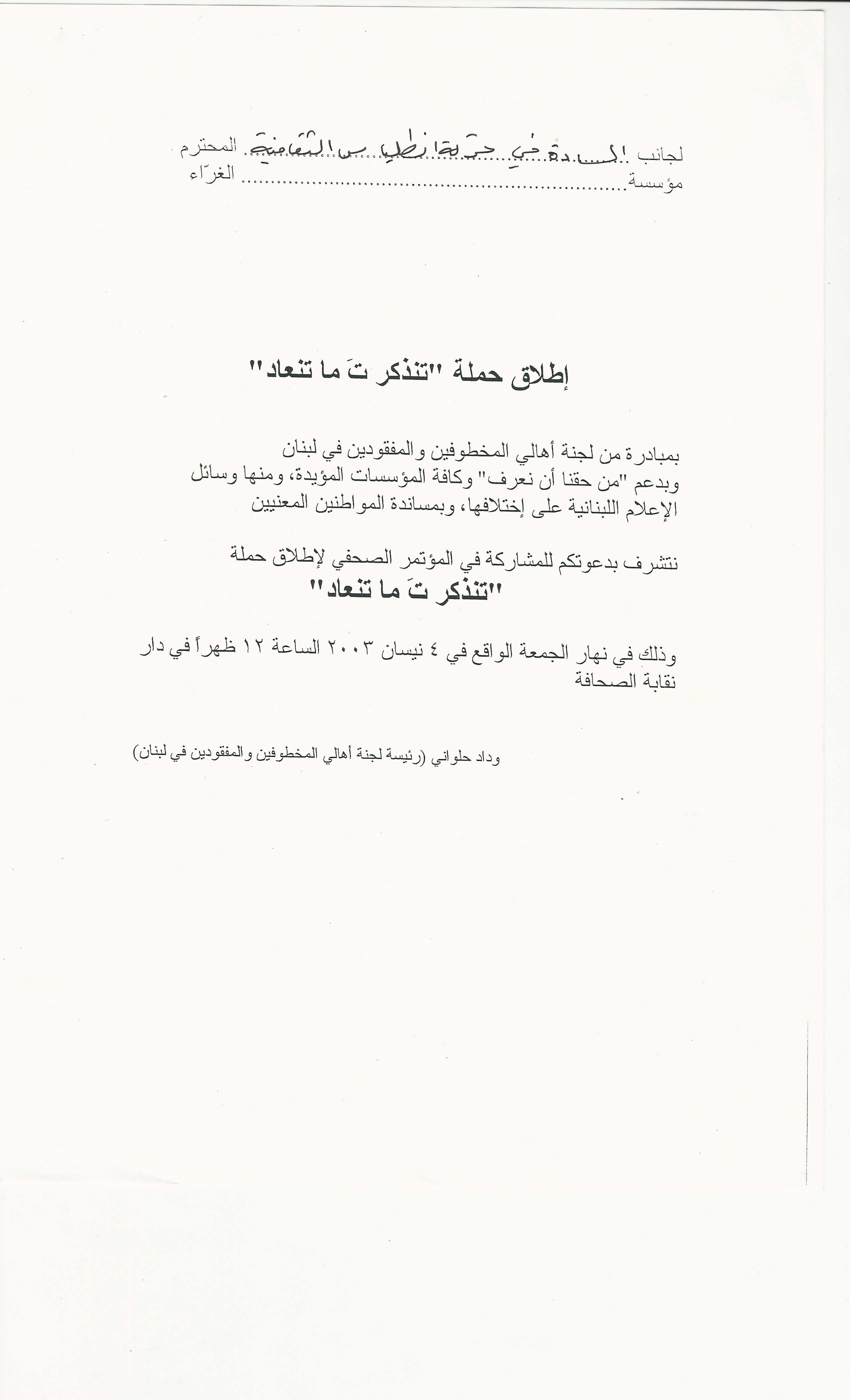 - ar دعوة لاطلاق حملة تنذكر ت ما تنعاد