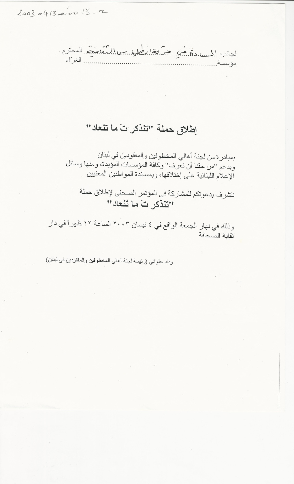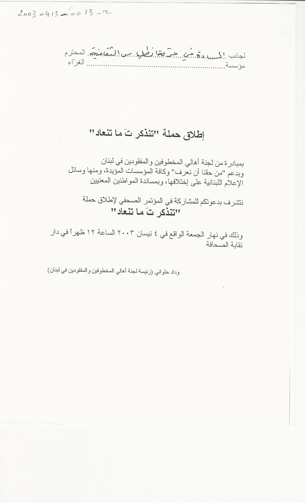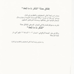 - ar اطلاق حملة تنذكر ت ما تنعاد