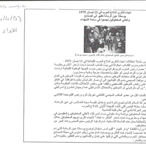 احياء لذكرى اندلاع الحرب في 13 نيسان 1975، بوسطة عين الرمانة تظهر في الصنائع واهالي المخطوفين تجمعوا في ساحة الشهداء