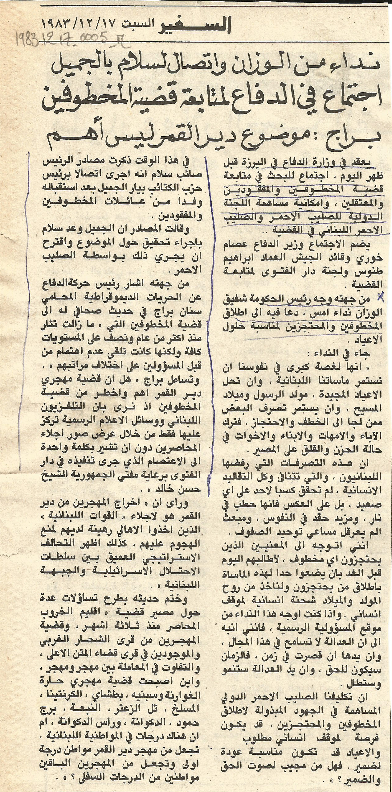 A call from al-Wazzan and Salam to Gemayel