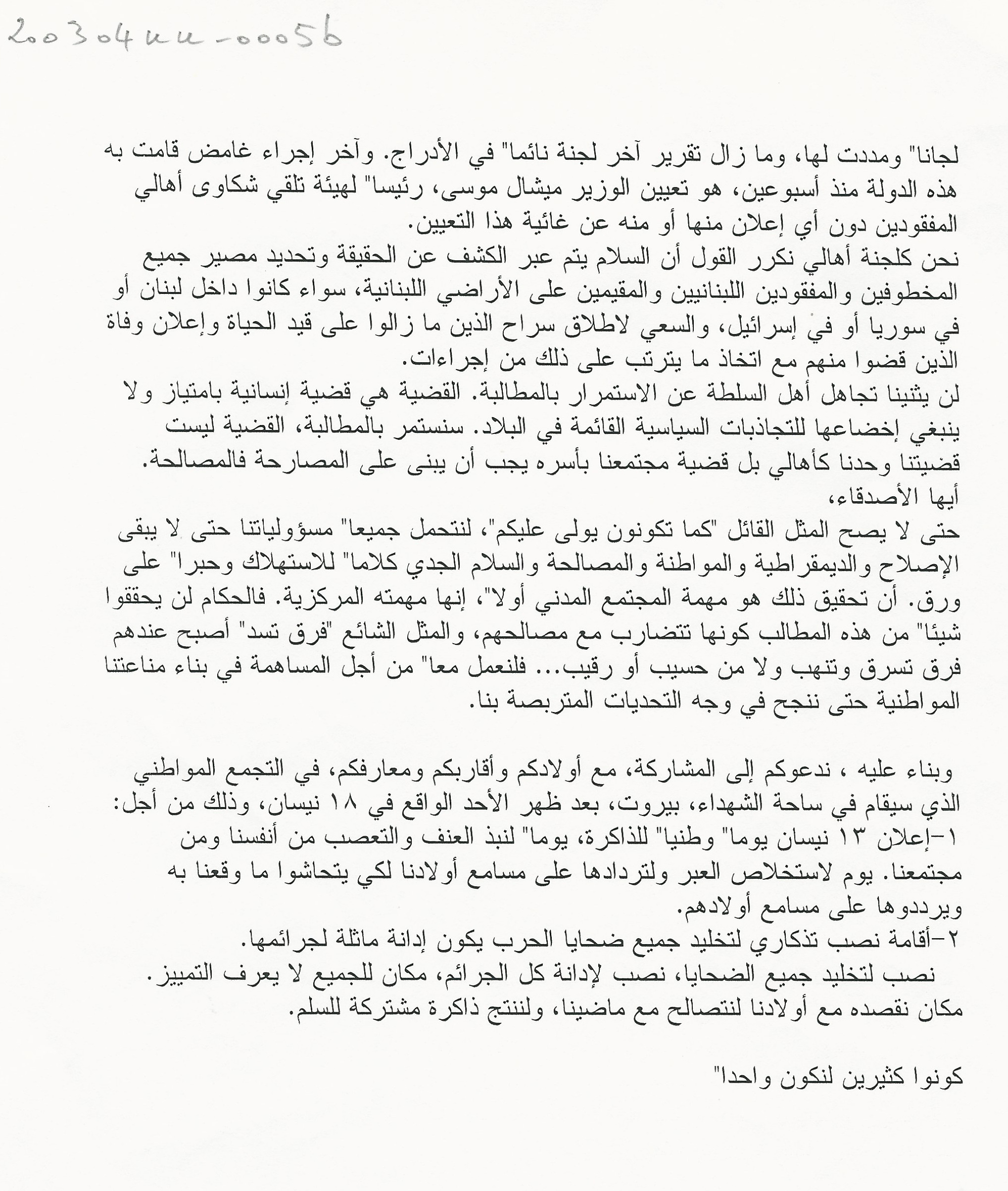 - لجنة اهالي المخطوفين والمفقودين في لبنان
