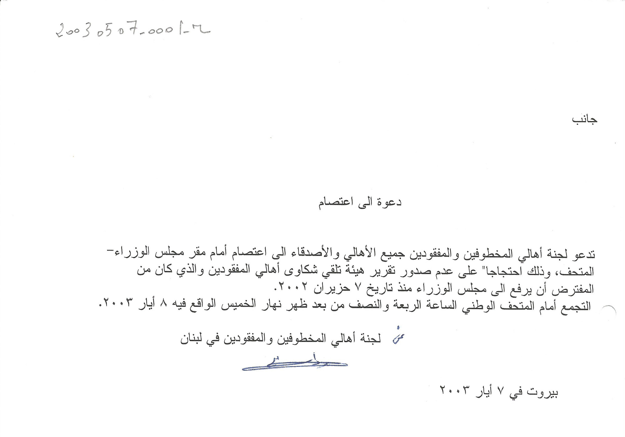 - ar دعوة الى اعتصام