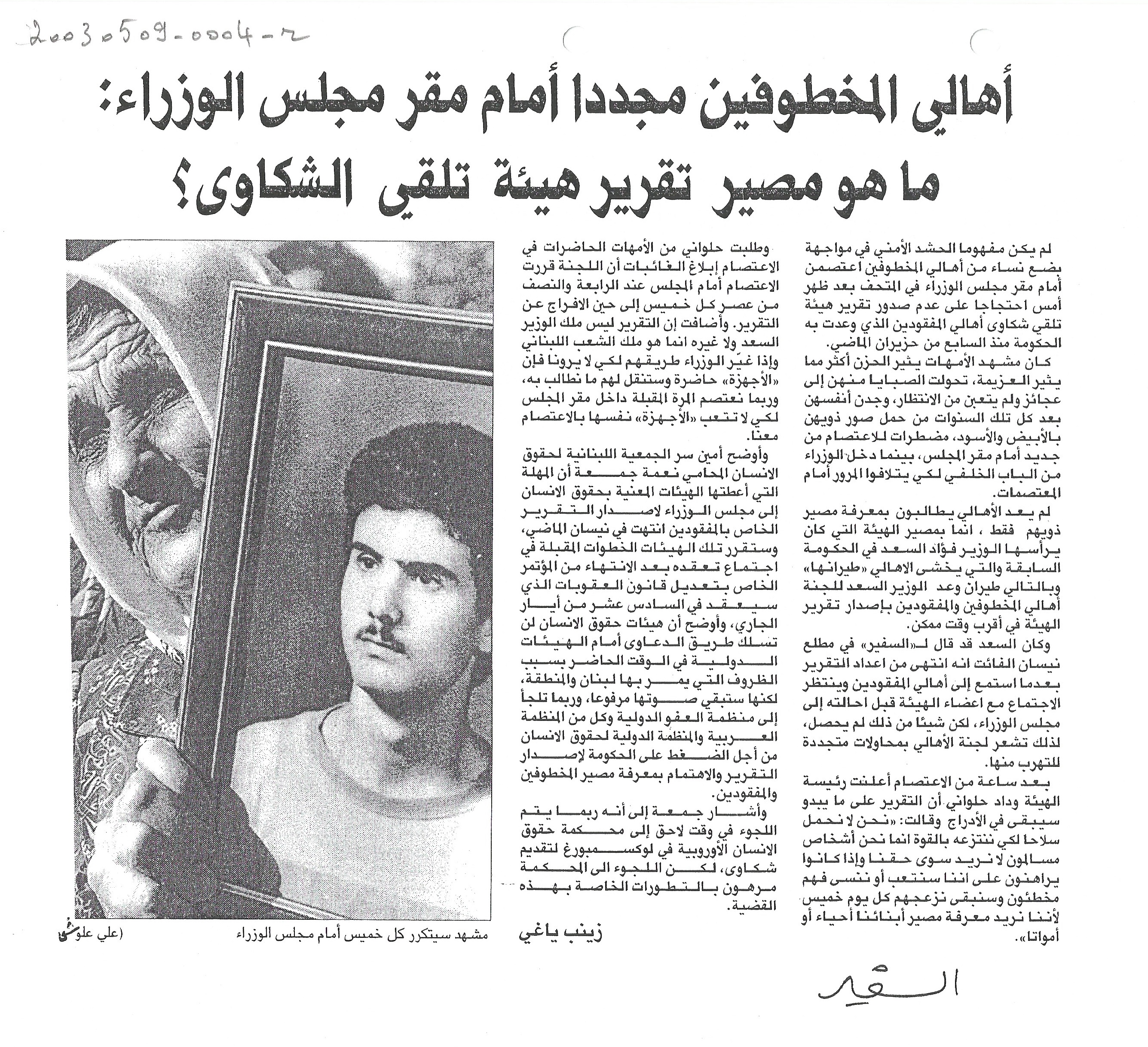 اهالي المخطوفين مجددا امام مقر مجلس الوزراء: ما هو مصير تقرير هيئة تلقي الشكاوى