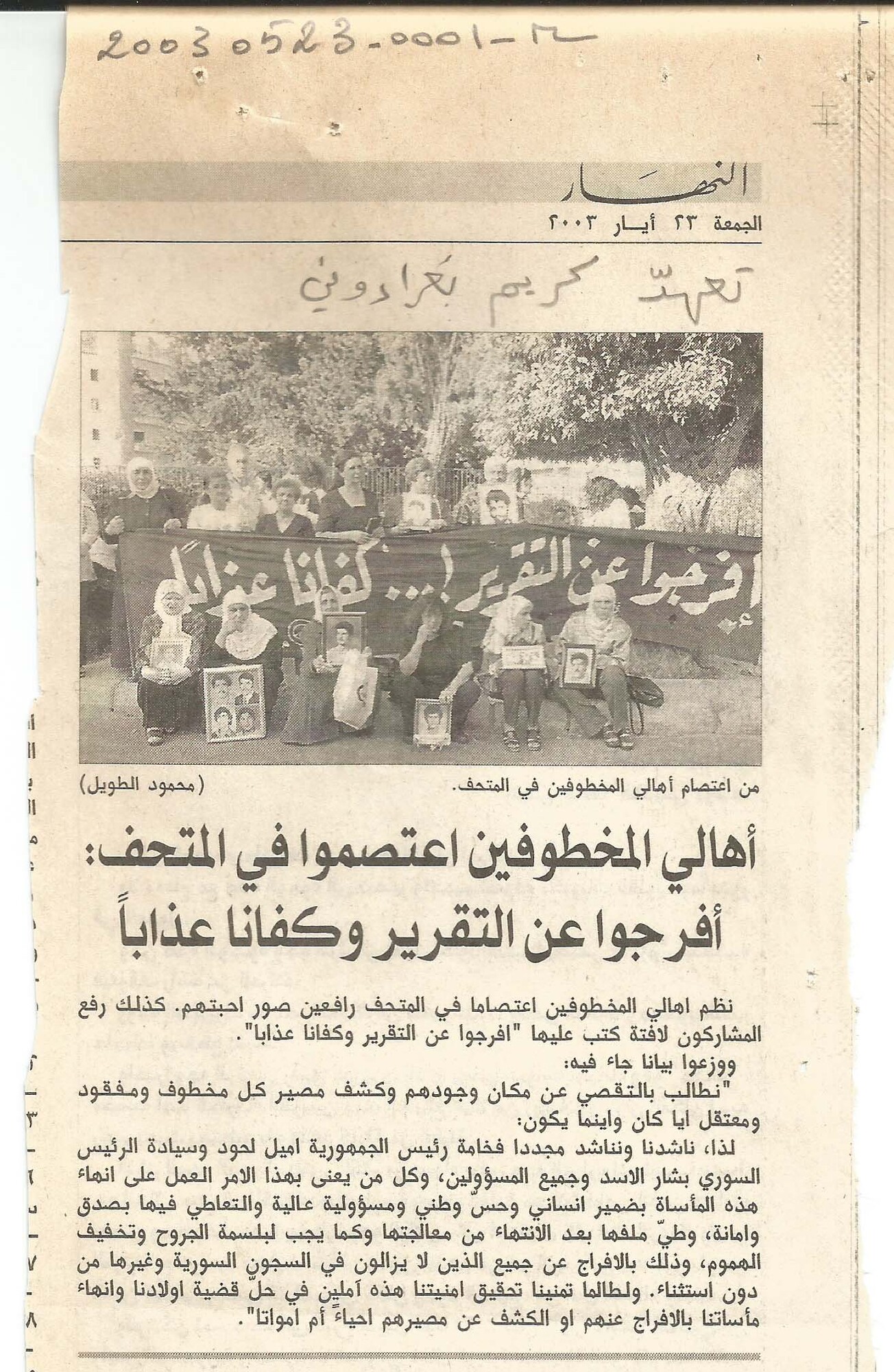 - ar The families of the Kidnapped held a sit-in in front of the museum: Release the report and save us pain.