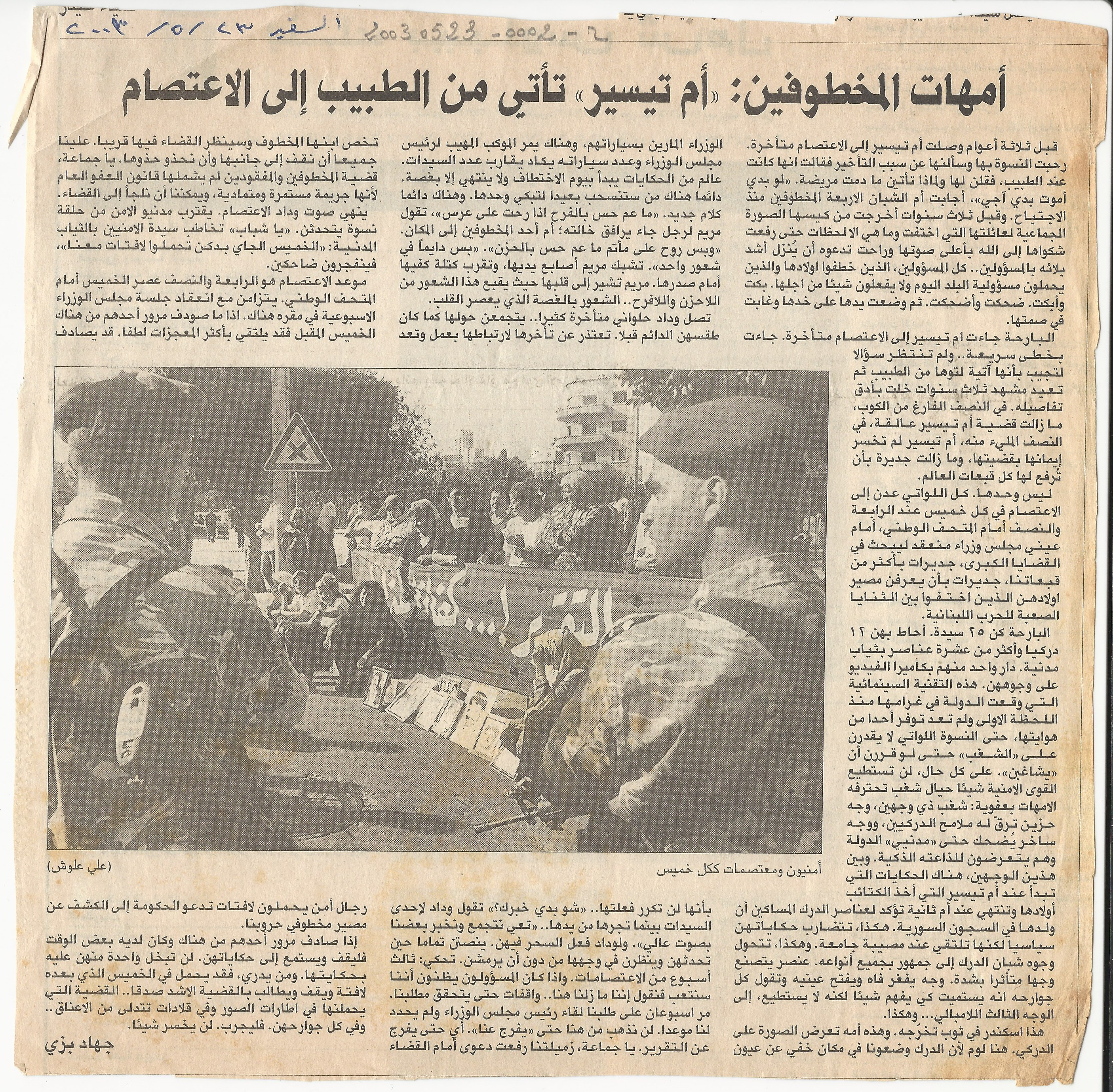 - en The mothers of the kidnapped: Um Taysir, [the mother of Taysir], headed from the clinic to the sit-in.