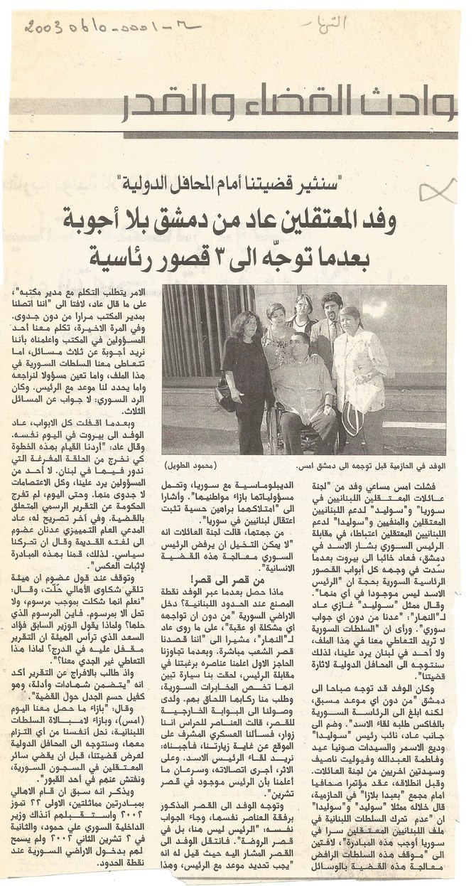 وفد المعتقلين عاد من دمشق بلا اجوبة بعدما توجه الى 3 قصور رئاسية: سنثير قضيتنا امام المحافل الدولية