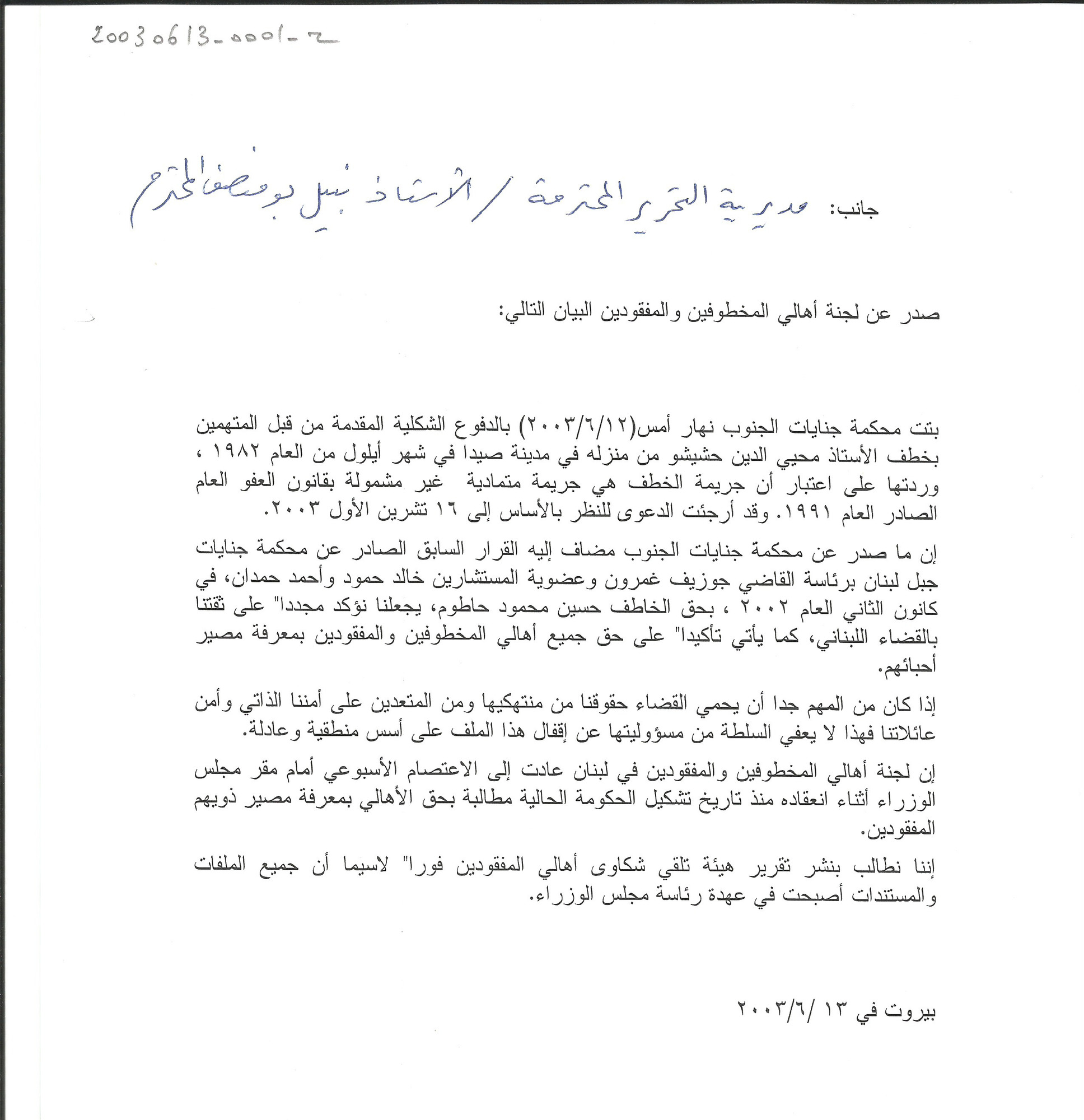 - لجنة اهالي المخطوفين والمفقودين في لبنان