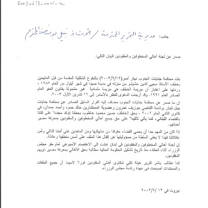 - ar بيان لجنة الاهالي بنشر تقرير هيئة تلقي الشكاوى