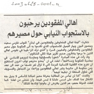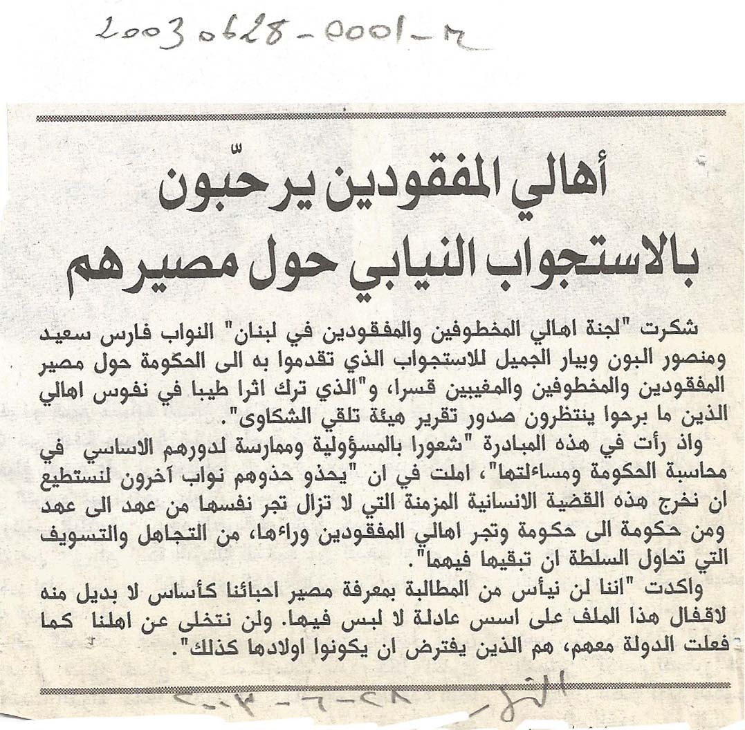 - ar اهالي المفقودين يرحبون بالاستجواب النيابي حول مصيرهم