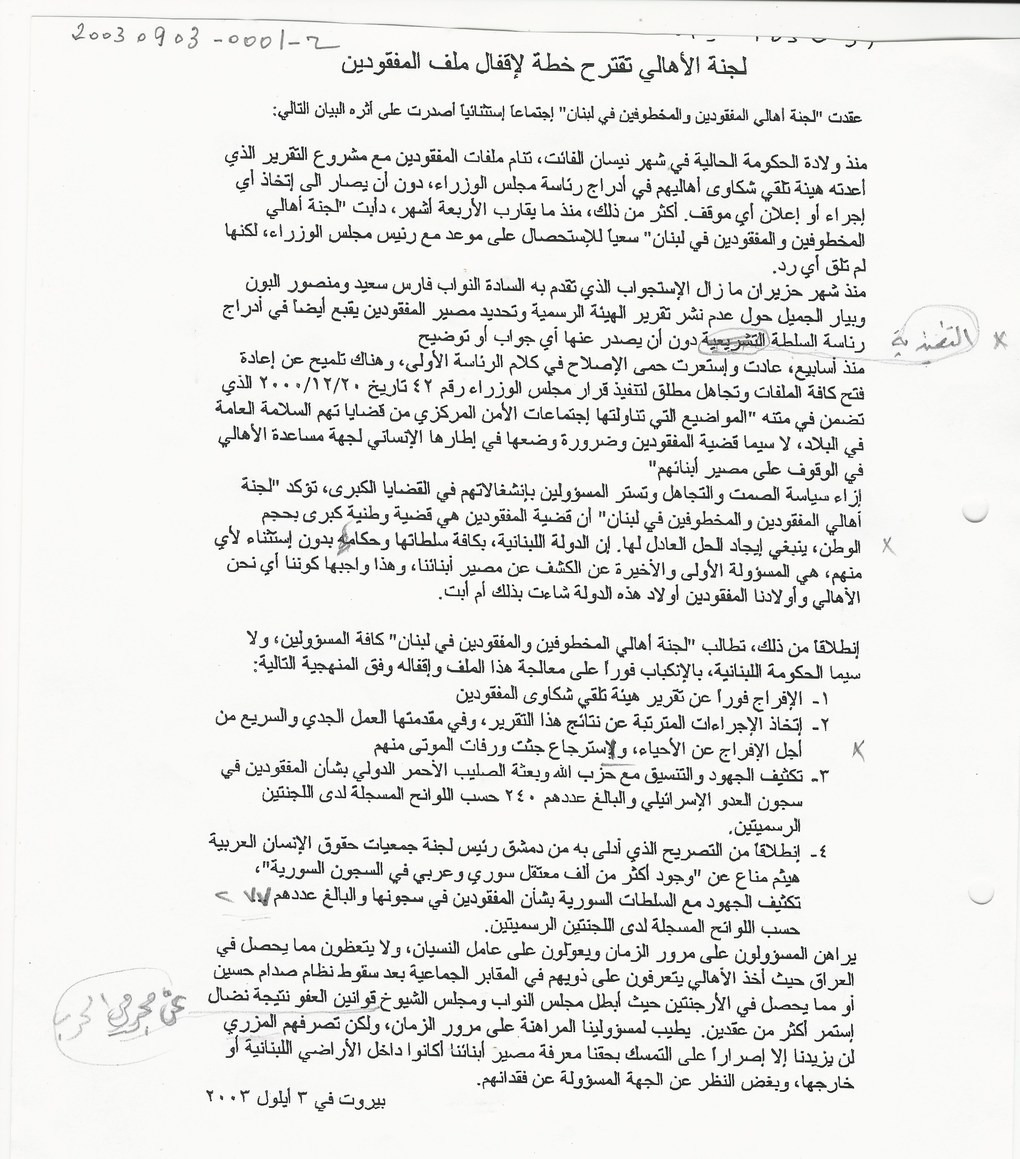 - ar لجنة الاهالي تقترح خطة لاقفال ملف المفقودين