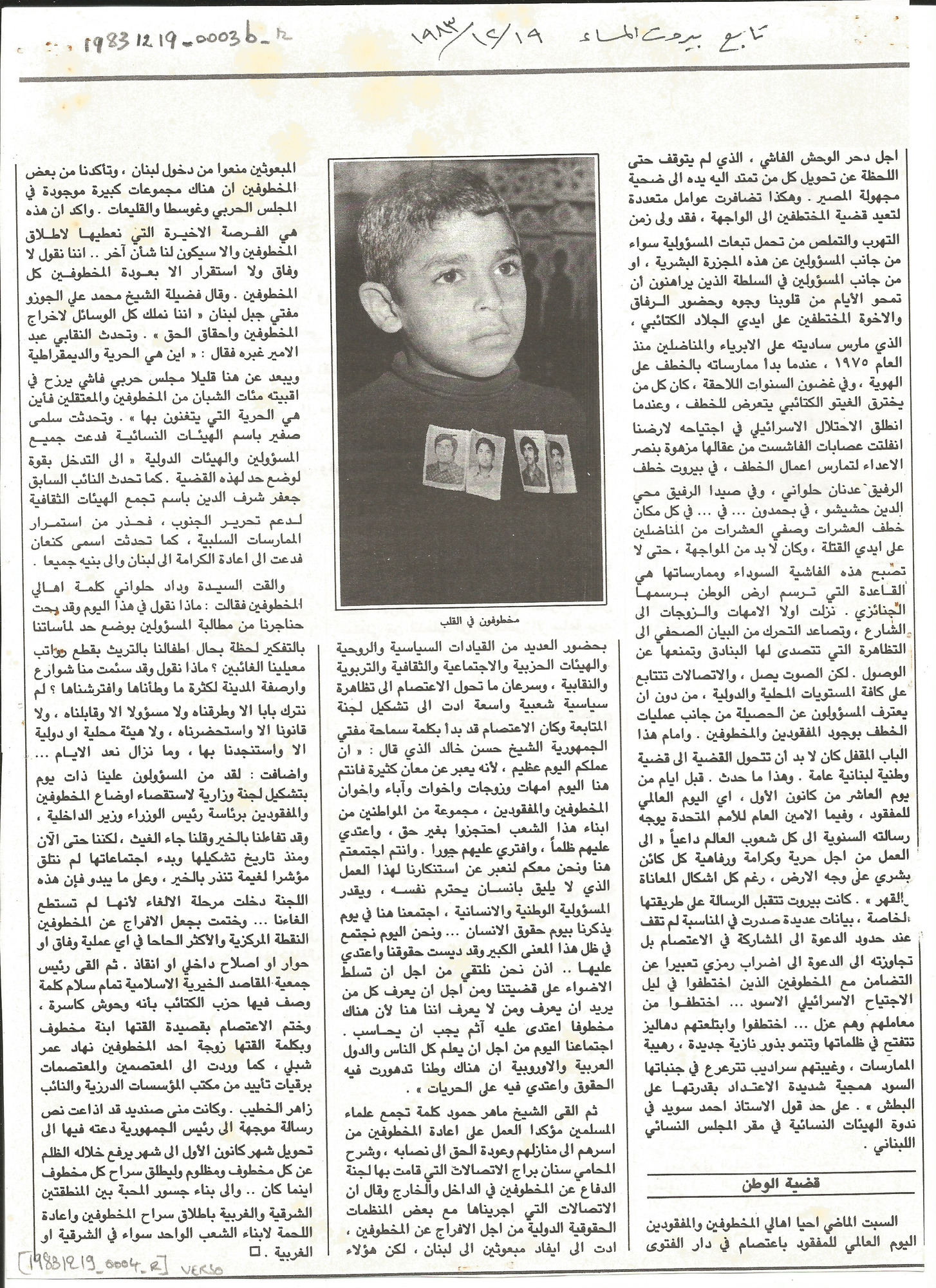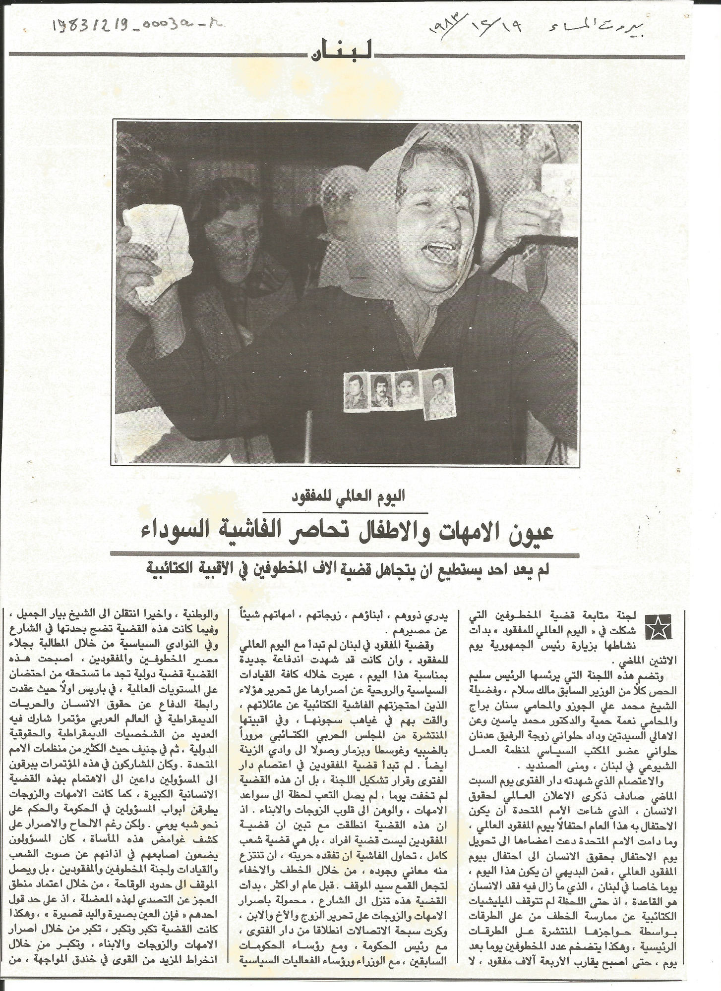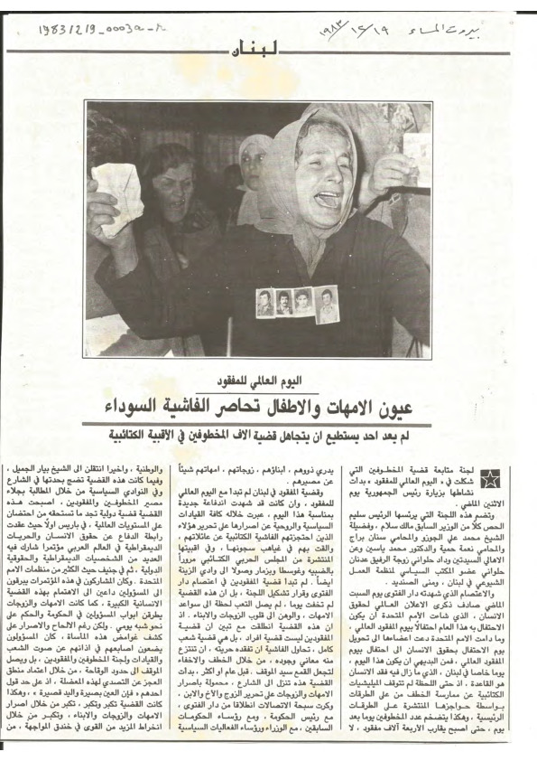 اليوم العالمي للمفقود، عيون الامهات والاطفال تحاصر الفاشية السوداء، لم يعد احد يستطيع ان يتجاهل قضية الاف المخطوفين في الاقبية الكتائبية