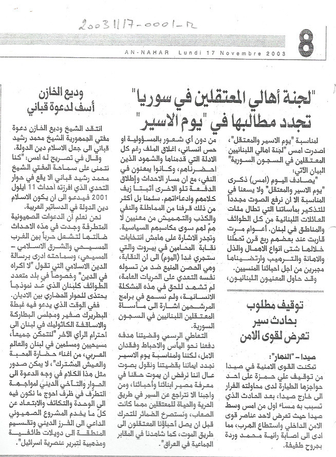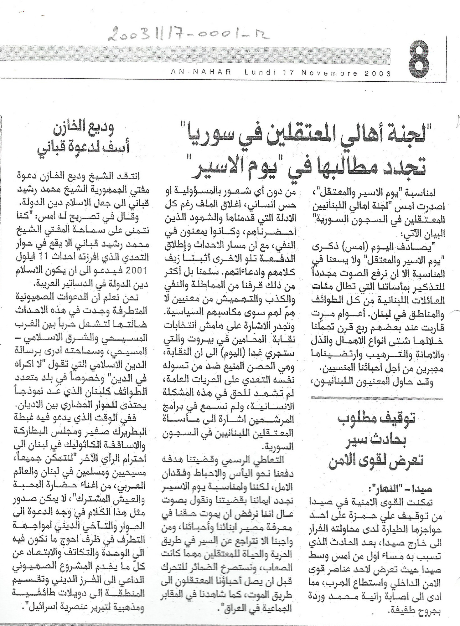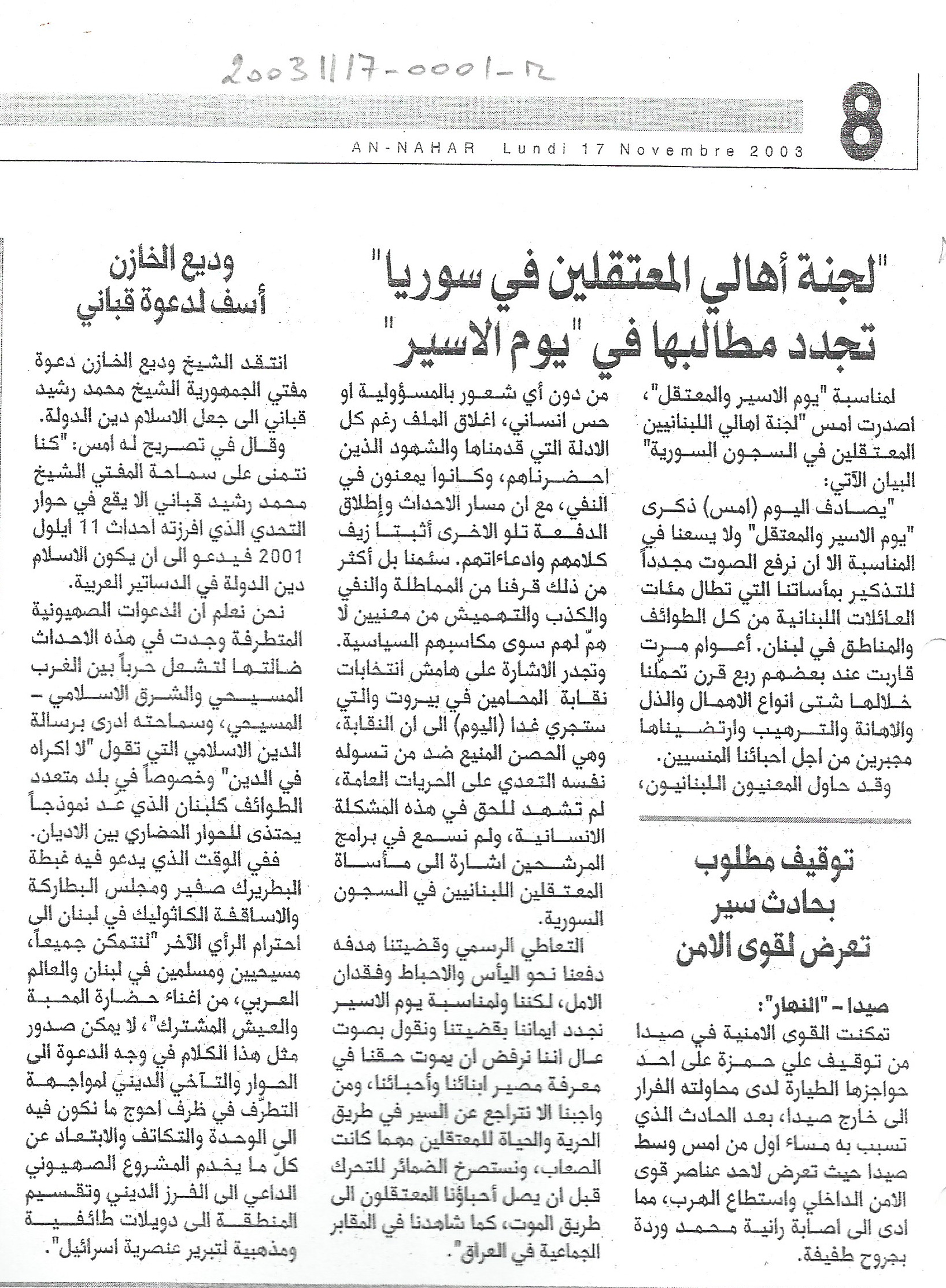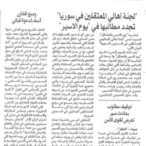 - en The Committee of the Families of the Detained in Syria renews its demands on the Day of the Detained.