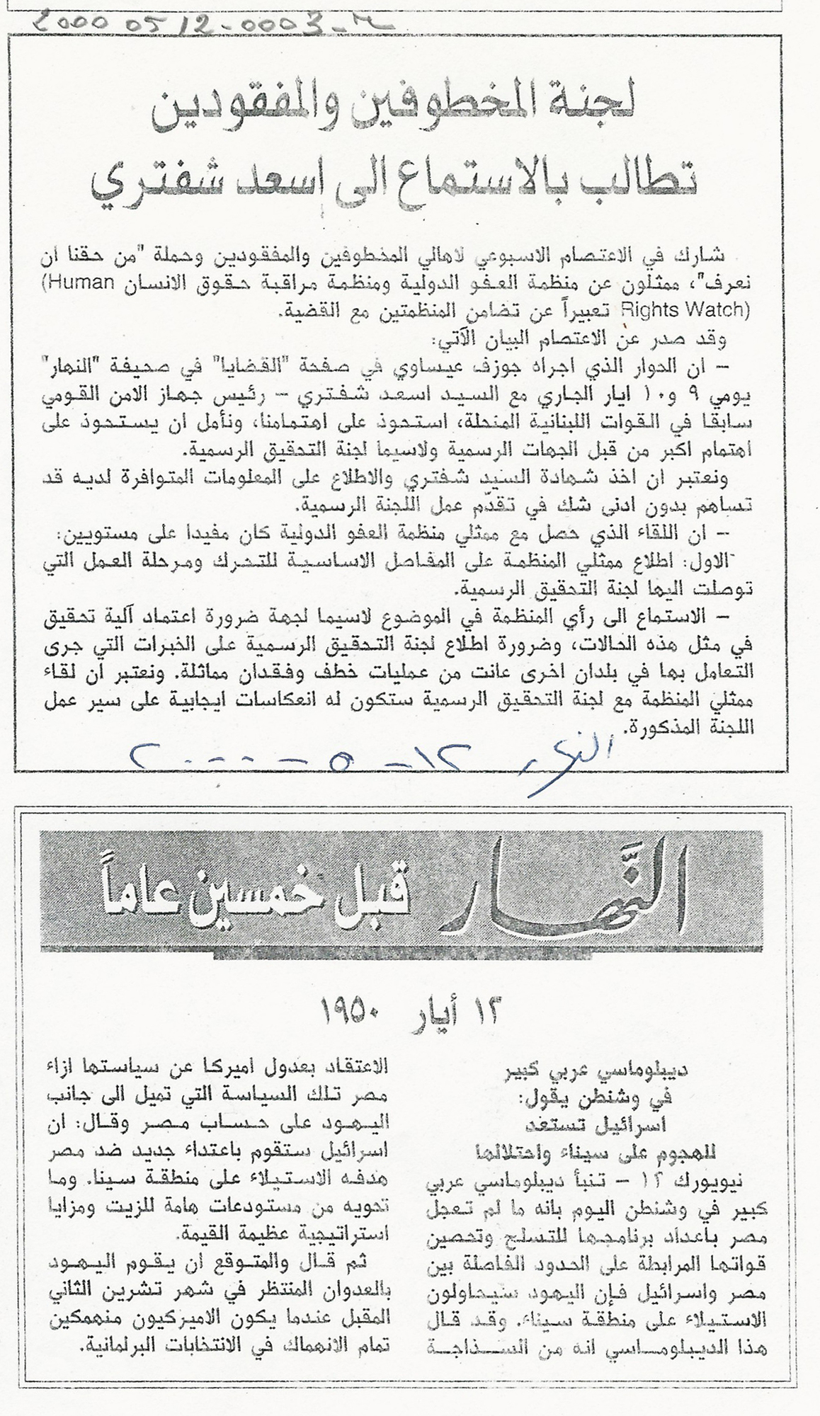 - ar لجنة المخطوفين والمفقودين تطالب بالاستماع الى اسعد شفتري