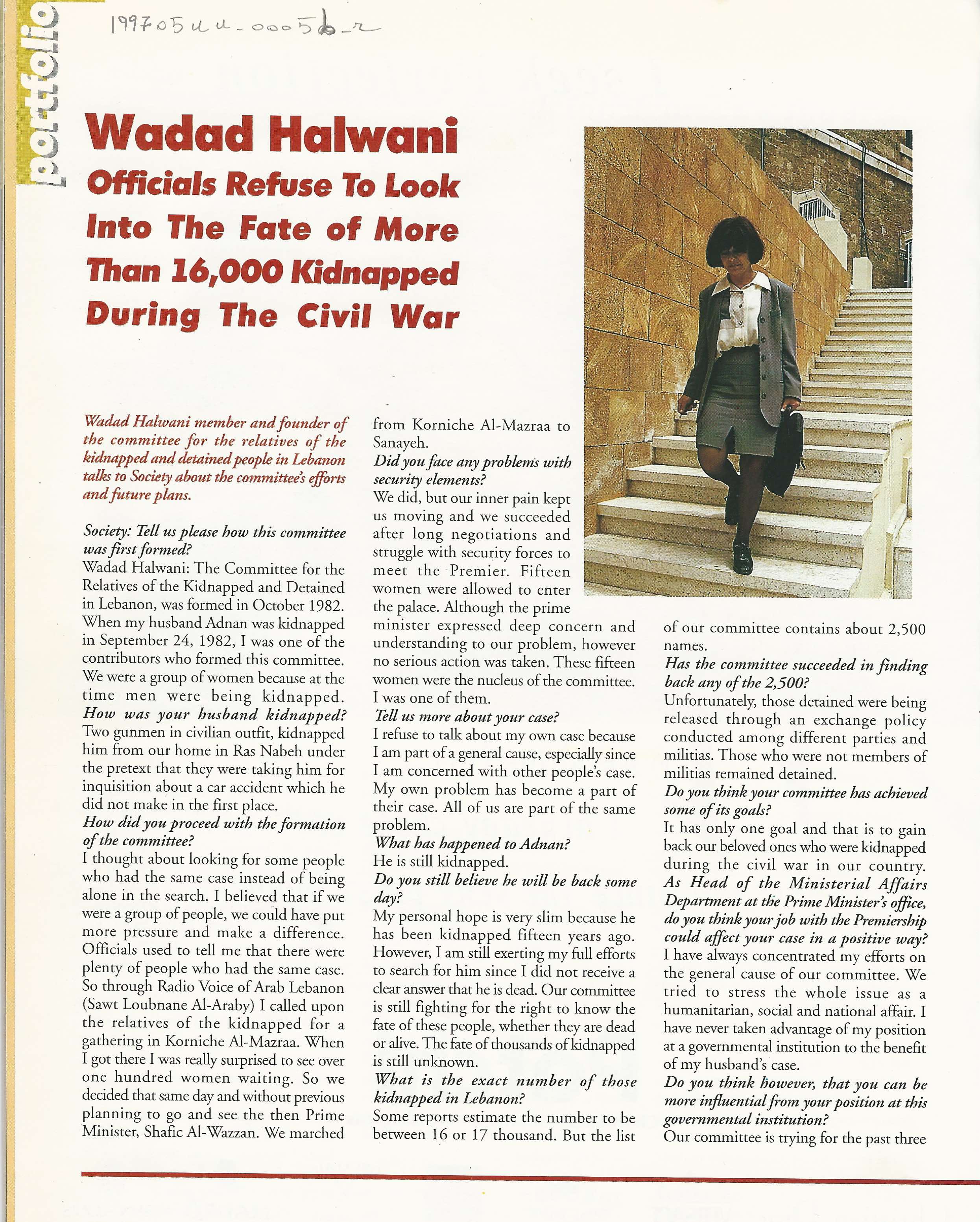 - en Wadad Halwani officials refuse to look into the fate of more than 16,000 kidnapped during the civil war
