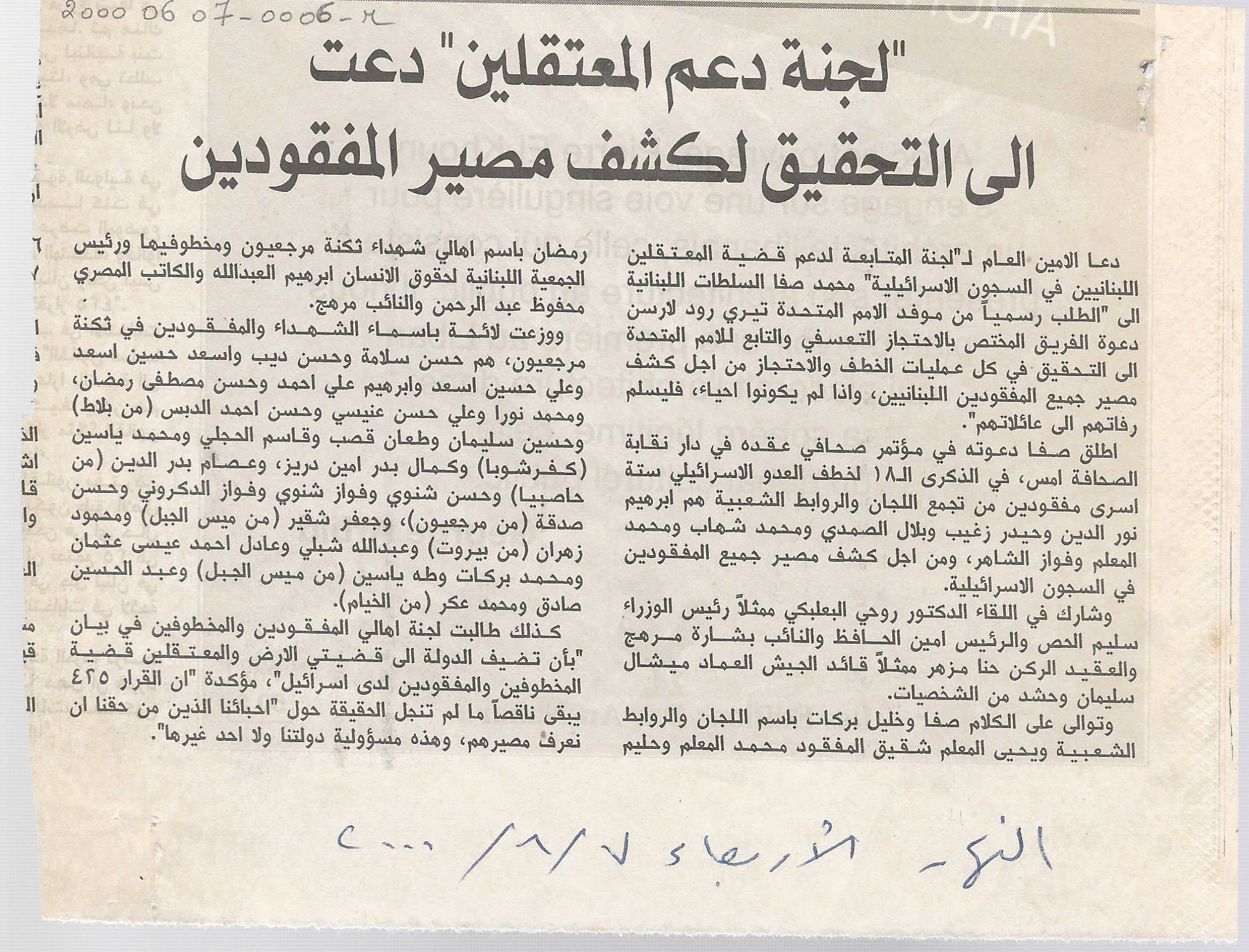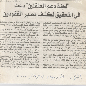 - ar لجنة دعم المعتقلين دعت الى التحقيق لكشف مصير المفقودين